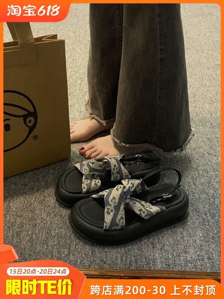 サマーサンダル女性の 2023 新しいフレンチレトロ comtable ライトウエスタンスタイルオールマッチ厚底カジュアルビーチシューズ 靴 夏物 jxjxf12410727203
