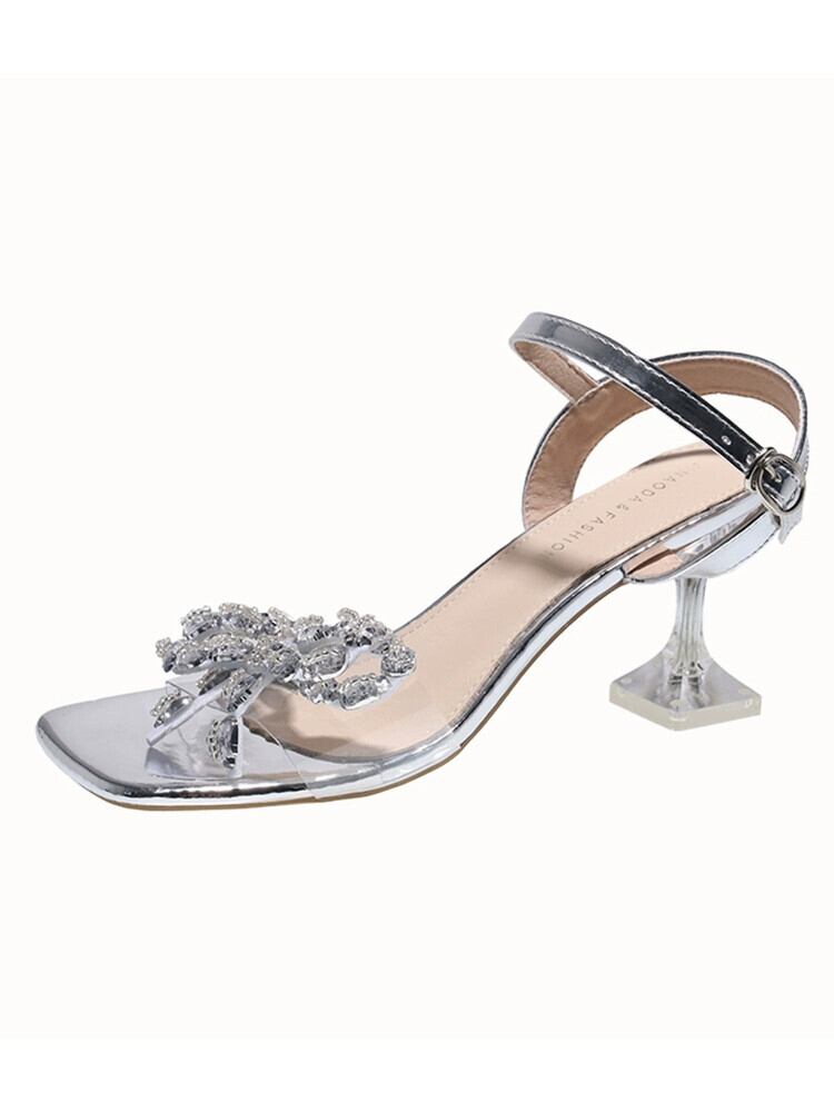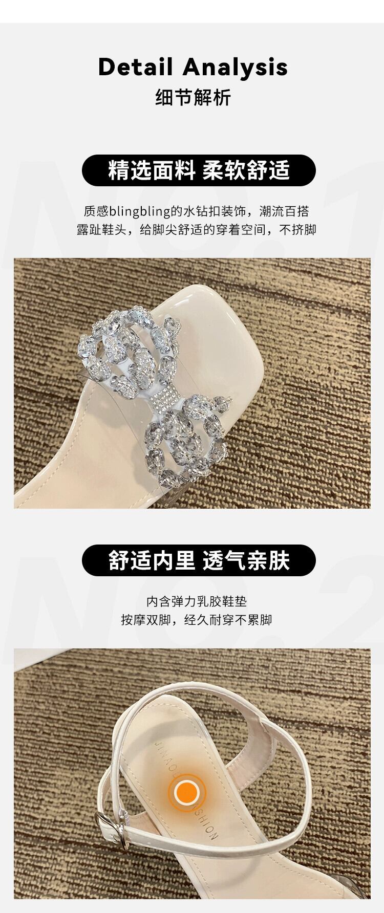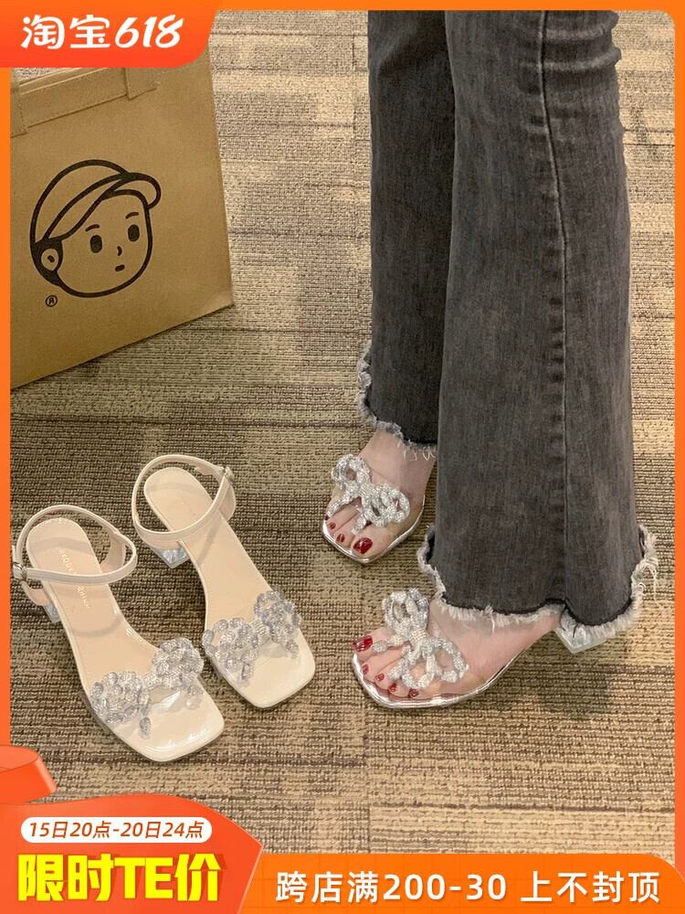 インターネット有名人サンダルの女性の 2023 夏の新しいファッション eign スタイルのラインストーンの弓妖精風一言ハイヒール リボン 靴 シューズ サマー 夏物 jxjxf45511218733