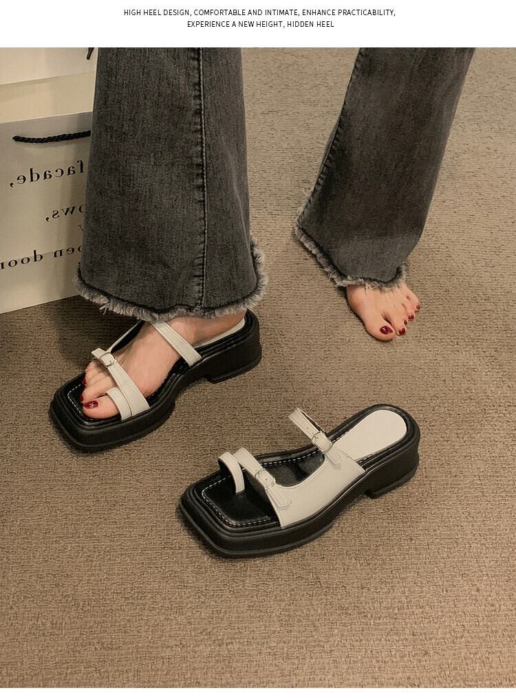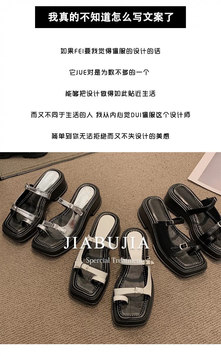 女性のスリッパアウターウェア 2023 夏の新ファッションオールマッチレトロベルトバックル厚底ノンスリップ eign スタイルクールスリッパ ミュール 靴 シューズ サマー 夏物 ハーネス jxjxf49184278227