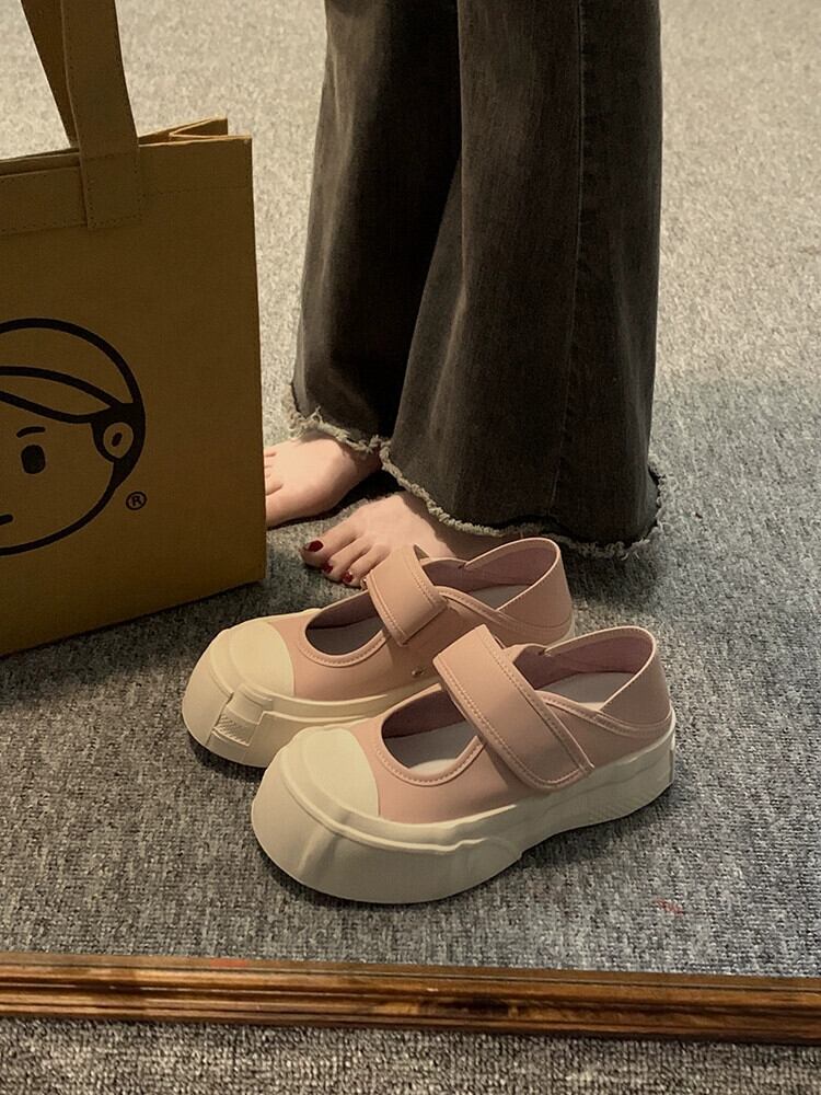 厚底カジュアル白靴 2023 春と秋の新ファッションオールマッチレトロ通気性ベルクロスポーツシューズトレンド ホワイト スプリング 春物 オータム 秋物 jxjxf75565391282