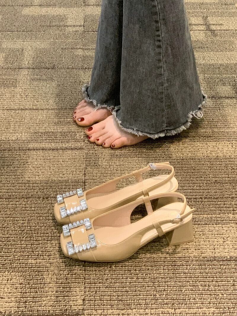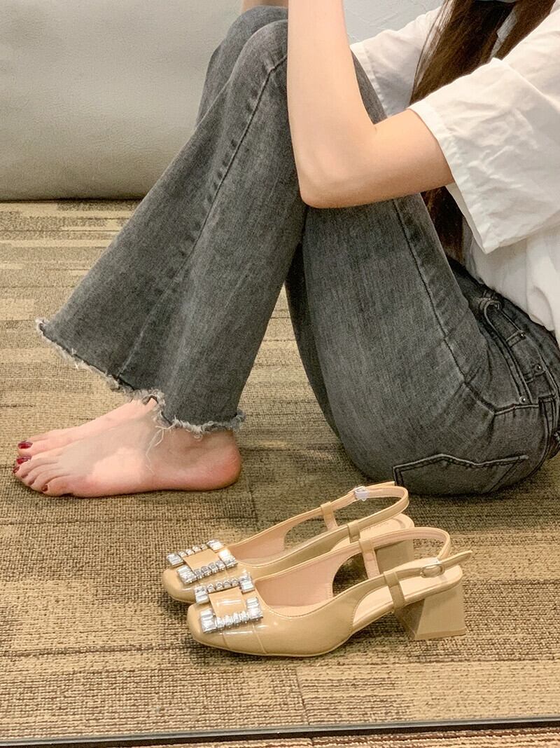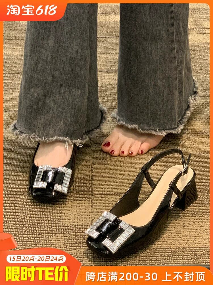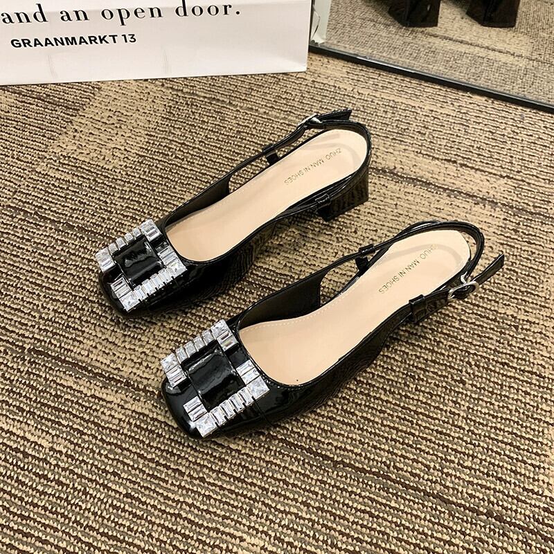 Baotou サンダル女性の 2023 夏の新ファッションオールマッチレトロラインストーン厚いヒールノンスリップ小さな革靴トレンド シューズ サマー 夏物 レザー jxjxf25390547168