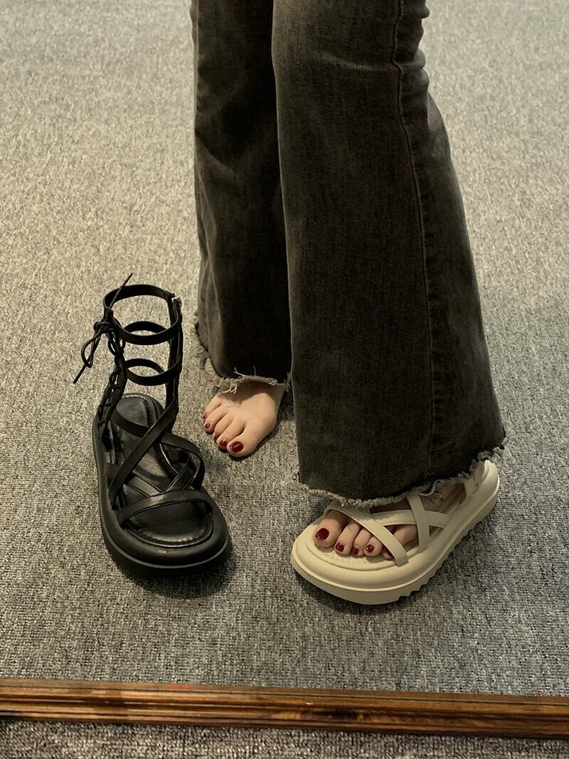 厚底ローマンサンダルレディース 2023 夏の新作ファッションオールマッチレトロクロス織りカジュアルビーチシューズトレンド 靴 サマー 夏物 jxjxf35443726536