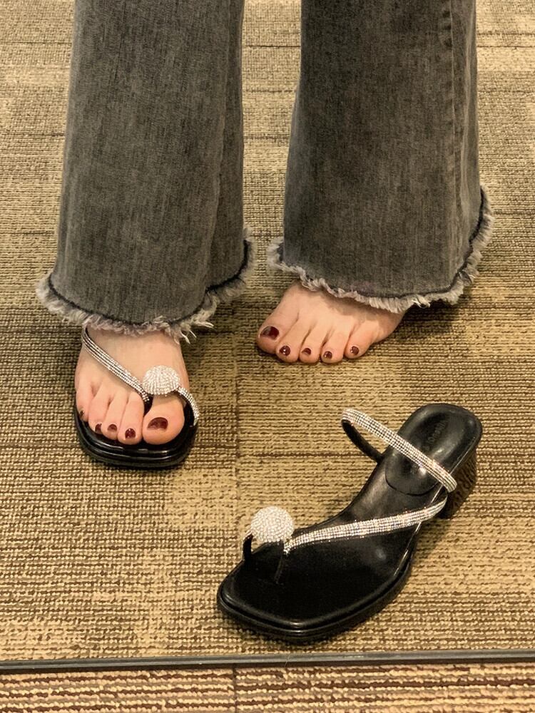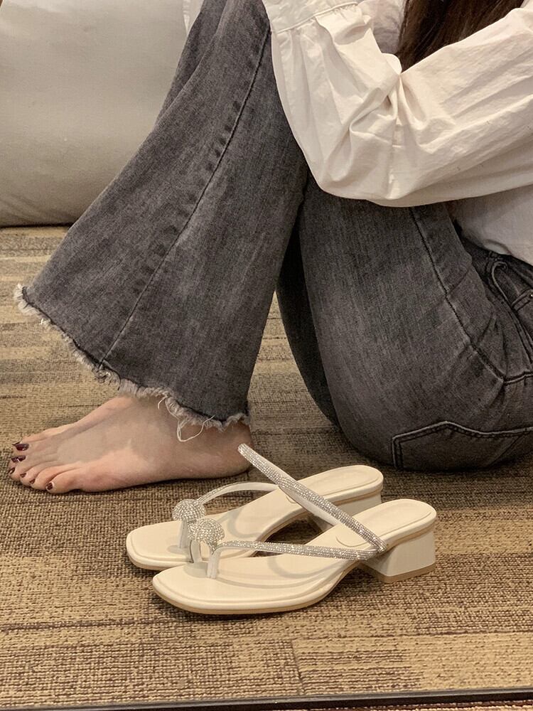 美しいチャンキーヒールセットトゥスリッパは2023年の夏に登場します。新しいファッションはすべてマッチする妖精の気質のラインストーンサンダルとスリッパです。 ミュール 靴 シューズ サマー 夏物 jxjxf6172493406