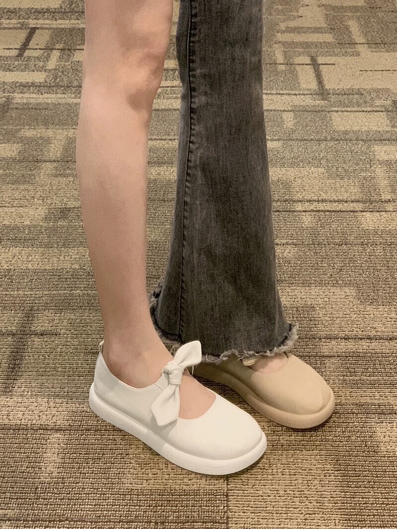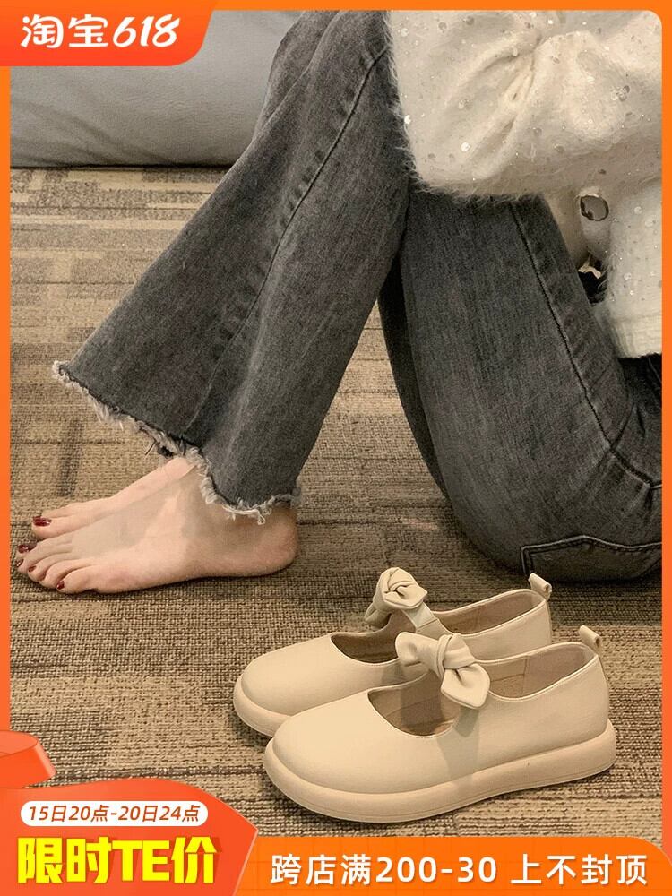 ese シングルシューズの女性の 2023 春の新ファッションオールマッチソフトで快適なフラット滑り止め甘い小さな革靴潮 大人ガーリー スウィート キュート カジュアル スプリング 春物 レザー jxjxf94736026171