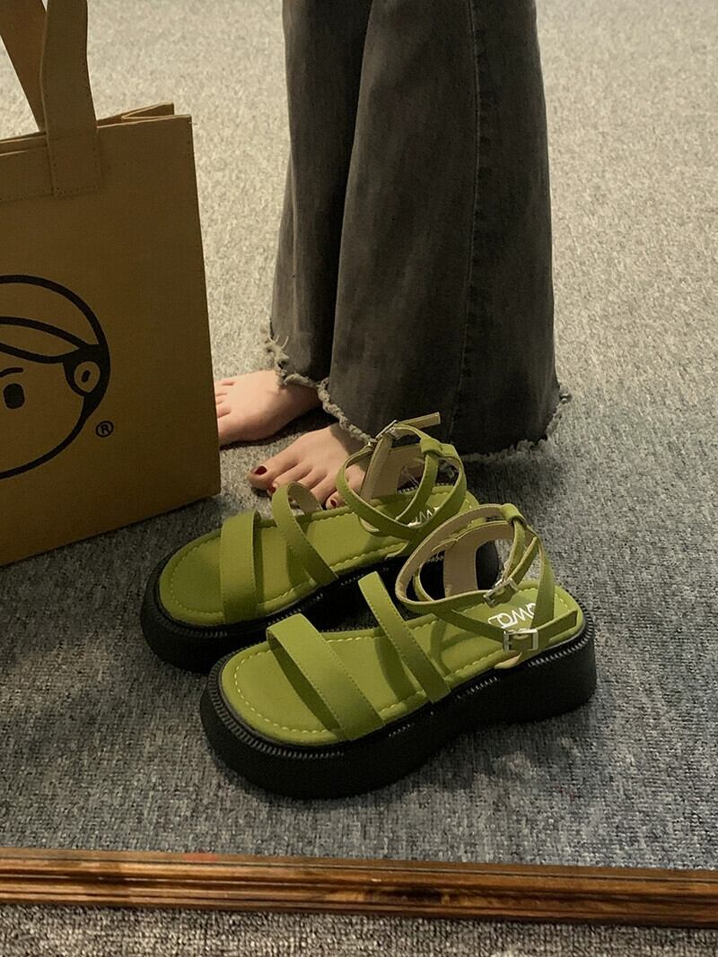厚底サンダル レディース 2023 夏の新作 ファッション オールマッチ レトロ コンタブル シンプル 滑り止め 一言ビーチサンダル 靴 シューズ サマー 夏物 スリッポン jxjxf52705066671