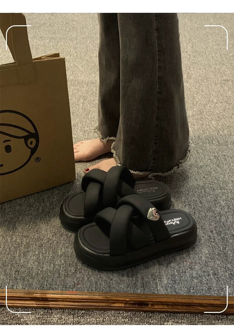 Jiabu 偽スリッパレディースアウター 2023 夏の新オールマッチ小さな厚い底 comtable eign スタイルのサンダルとスリッパ ミュール 靴 シューズ サマー 夏物 jxjxf5285949611