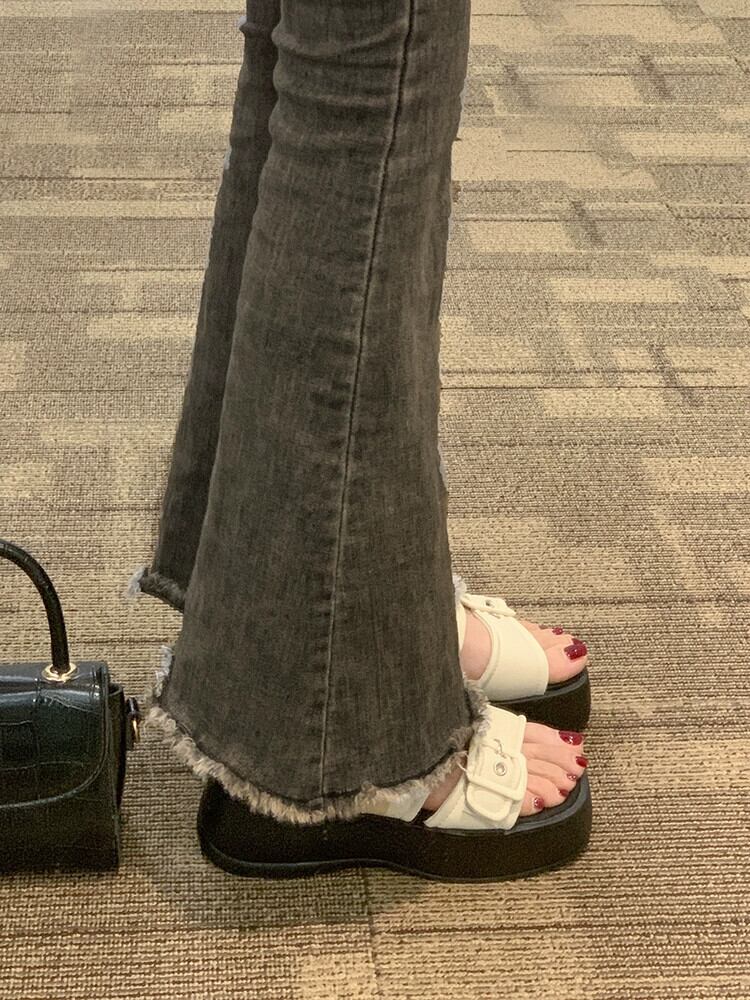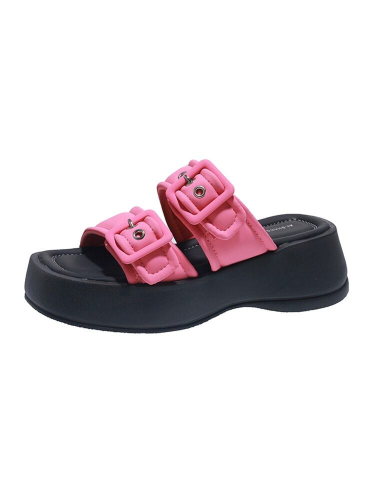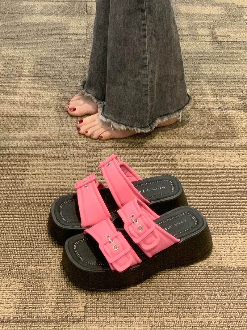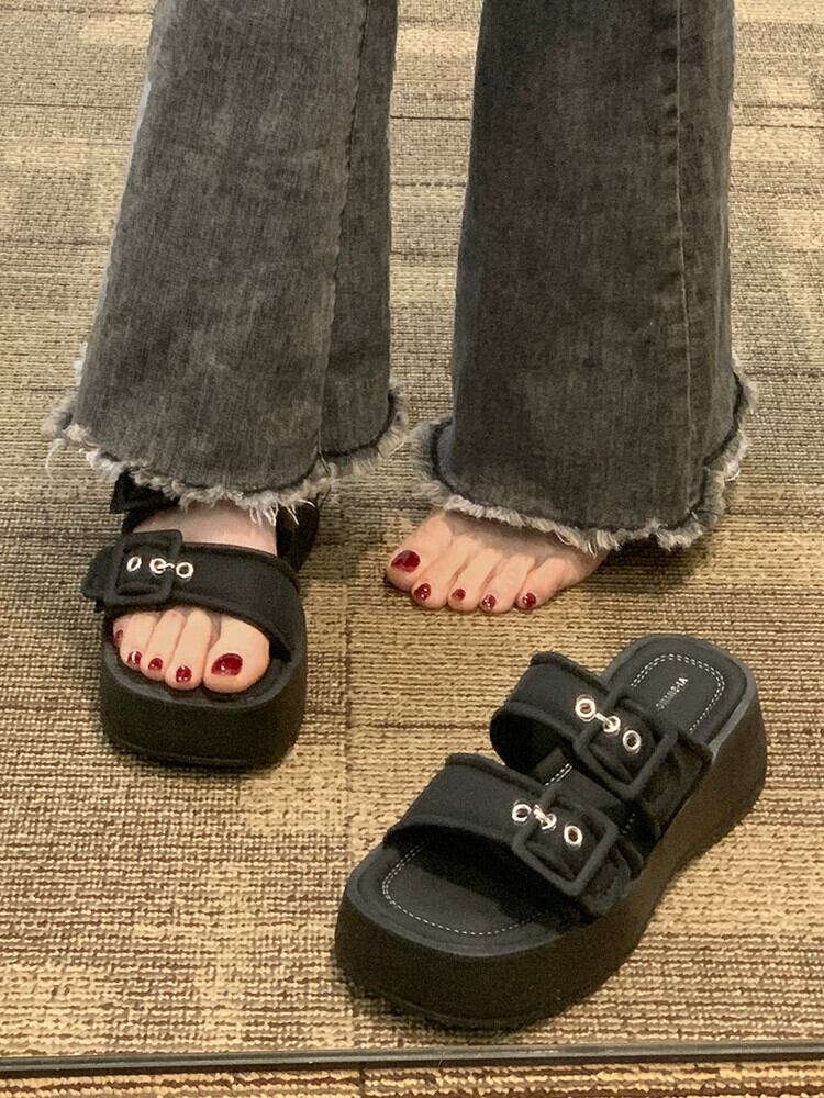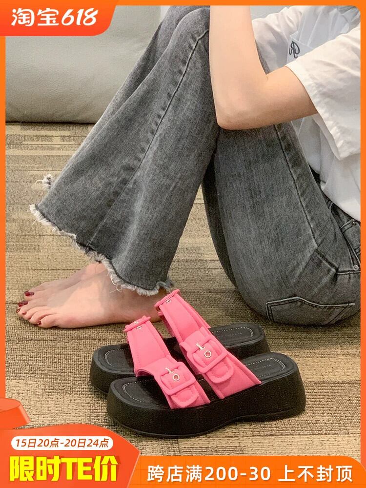スリッパ着用夏の女性の 2023 新しいファッションオールマッチレトロベルトバックルカジュアル厚底ワードサンダルとスリッパ ミュール 靴 シューズ サマー 夏物 ハーネス jxjxf41451474729