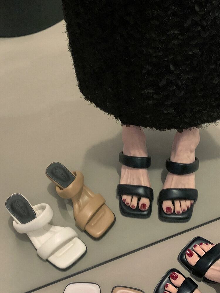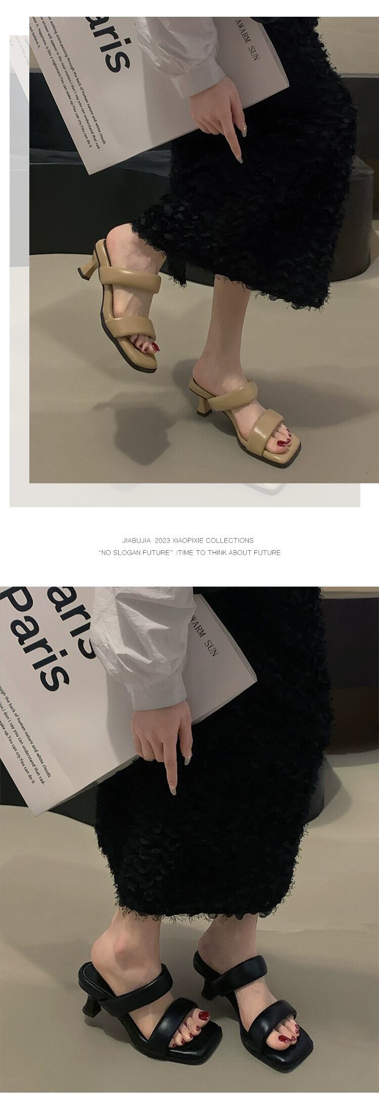 2023 年の夏に出かけるスティレットスクエアトゥサンダルとスリッパの女性の新しいファッションオールマッチレトロハイエンド気質ハイヒールシューズ 靴 ミュール サマー 夏物 スクウェア jxjxf49955825280