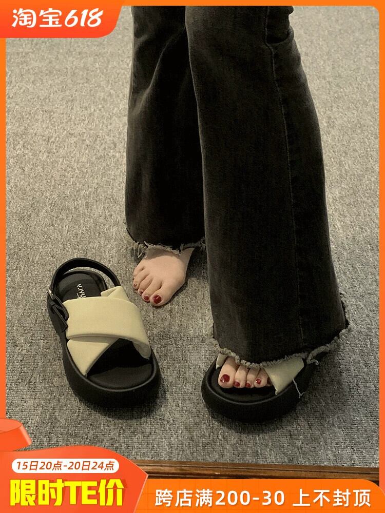 レディースサンダル 2023 夏の新ファッションオールマッチシンプルクロスカジュアル快適な滑り止め厚底ビーチシューズ 靴 サマー 夏物 jxjxf30882161197