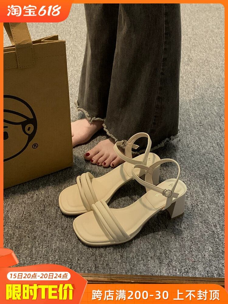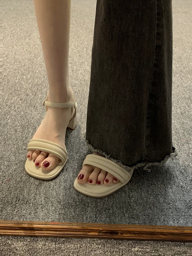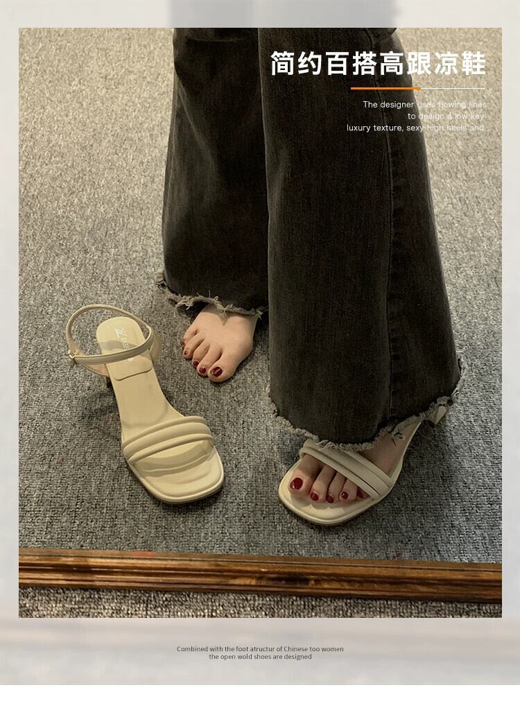 サンダル女性の 2023 夏の新しいファッションオールマッチフランスのレトロな小さな気質ハイヒールの一言 靴 シューズ サマー 夏物 jxjxf91295702642