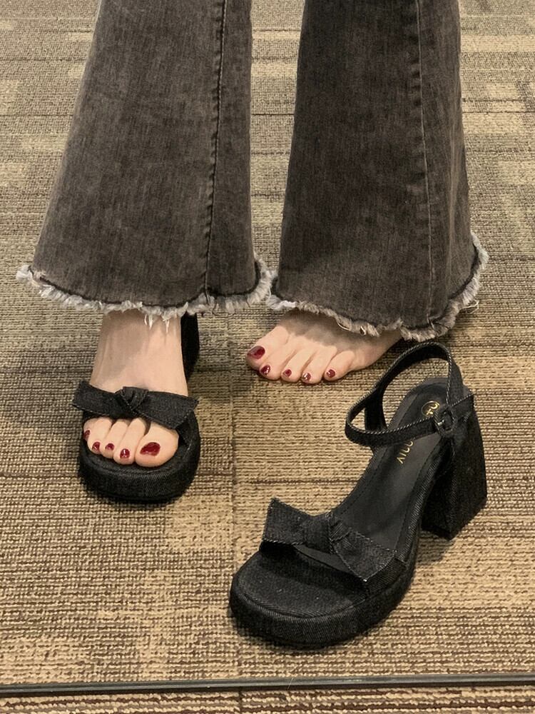 太いヒールサンダルレディース 2023 夏の新ファッションオールマッチ気質レトロ優しいハイヒールの靴潮 シューズ サマー 夏物 jxjxf72077986484