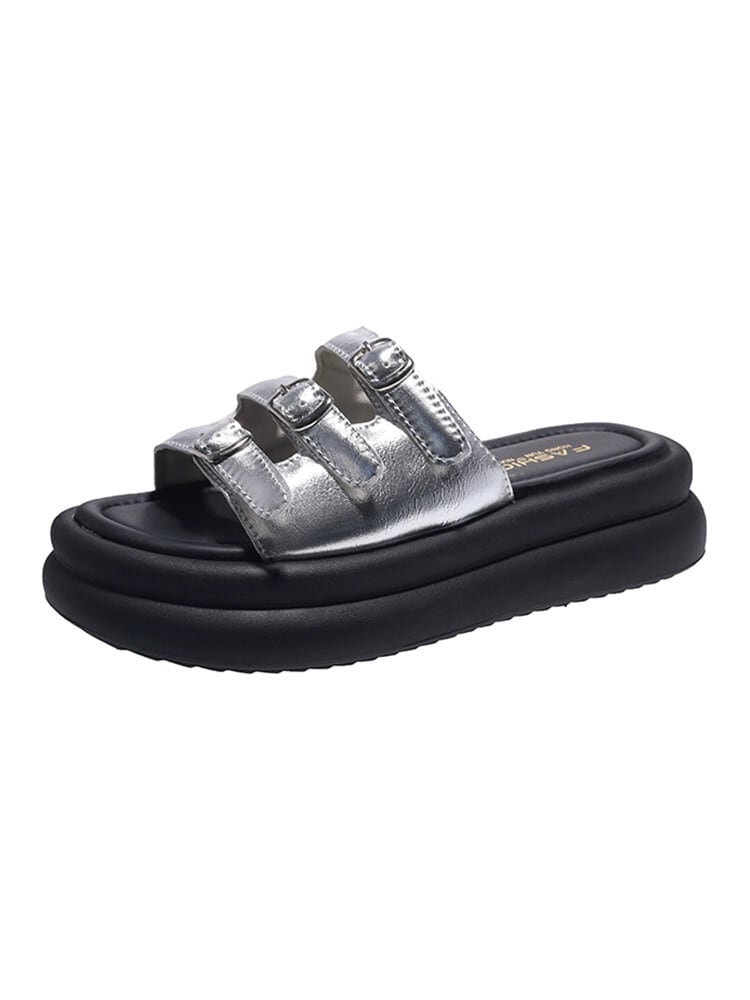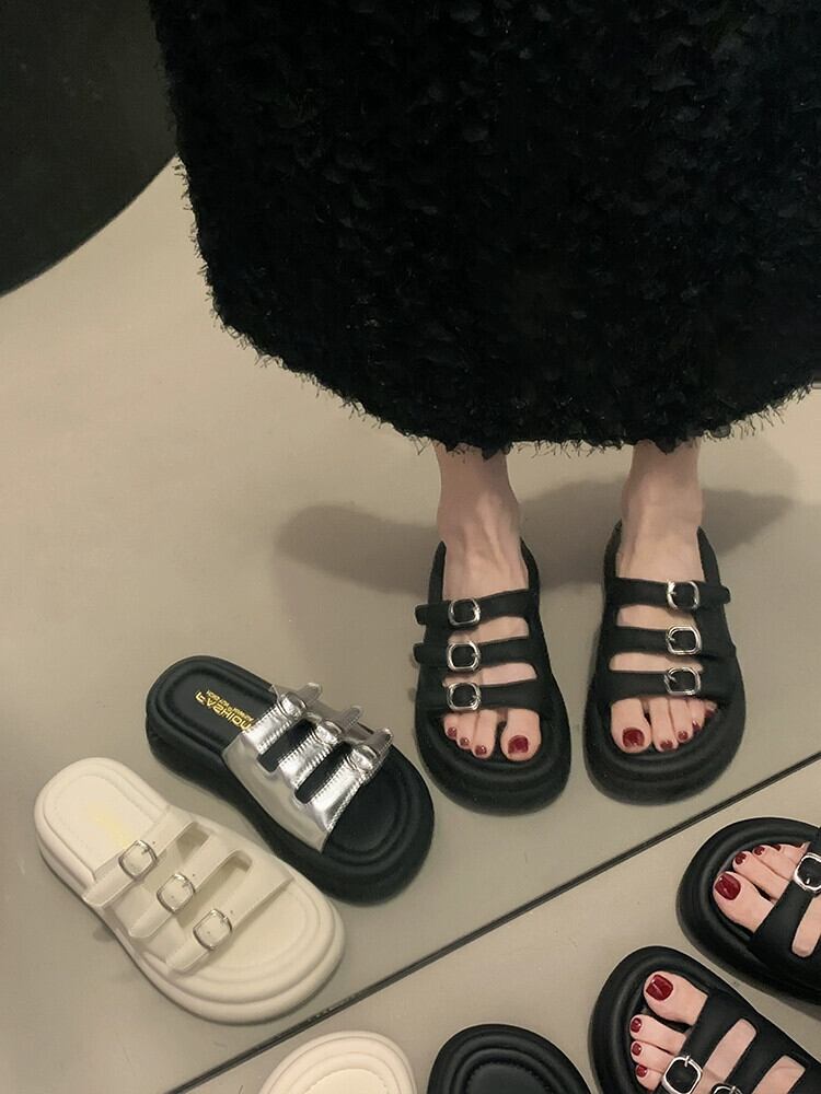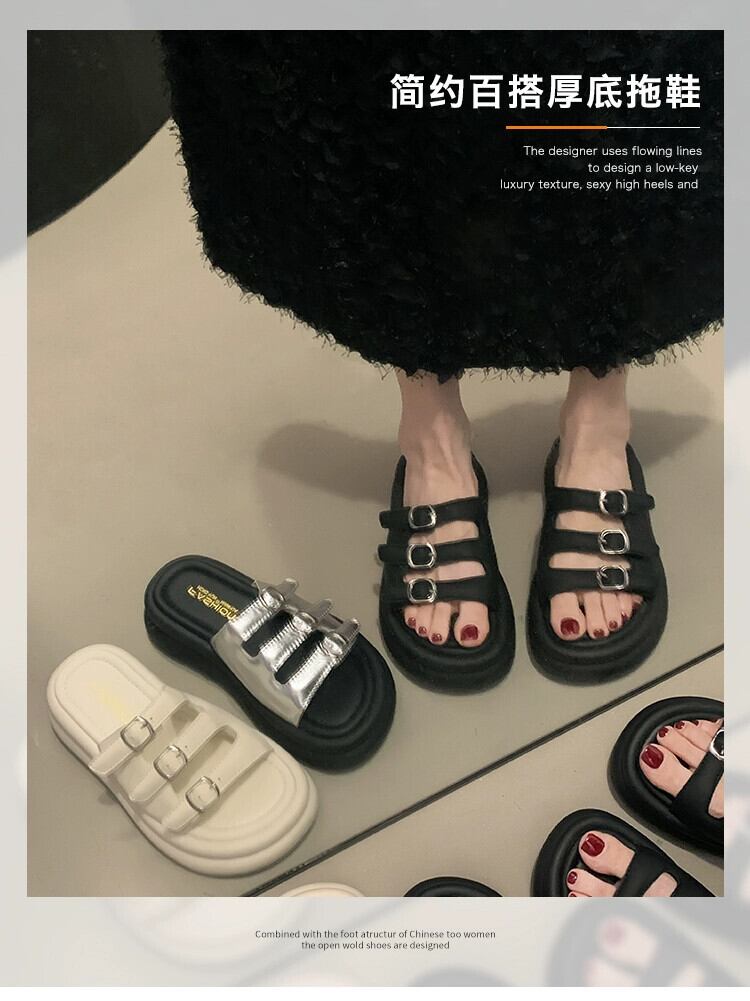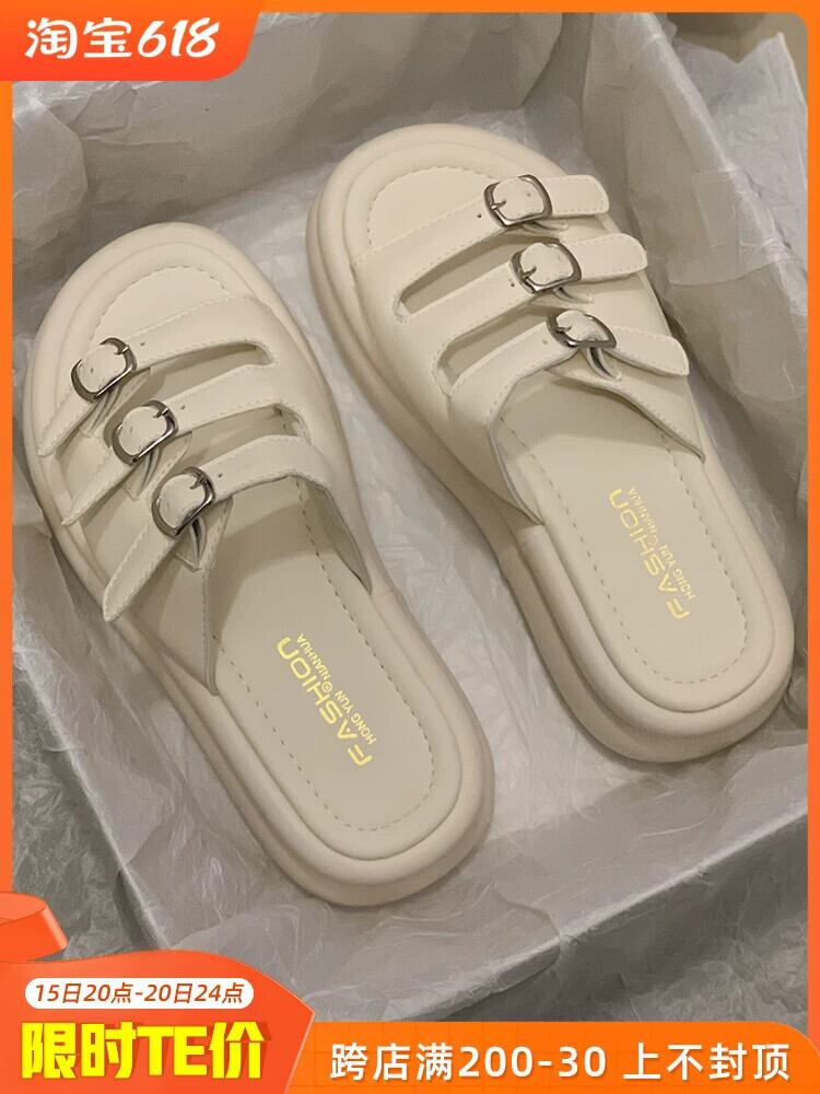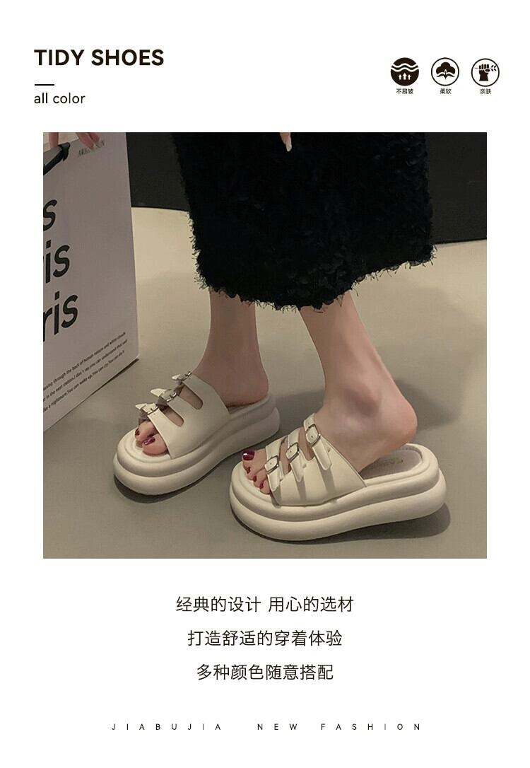 スリッパ女性の夏アウター 2023 新しいシンプルなレトロなベルトバックル comtable マフィン厚底カジュアルサンダルとスリッパ ミュール 靴 シューズ サマー 夏物 ハーネス jxjxf92214730207