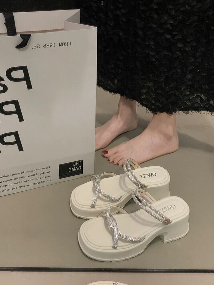 美しいスリッパアウターウェアレディース 2023 夏の新しいスーパーファッションオールマッチ妖精ラインストーンワードサンダルとスリッパトレンド ミュール 靴 シューズ サマー 夏物 jxjxf32094424069