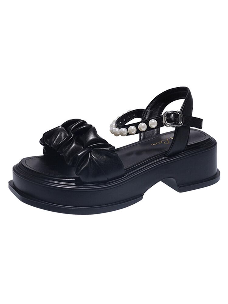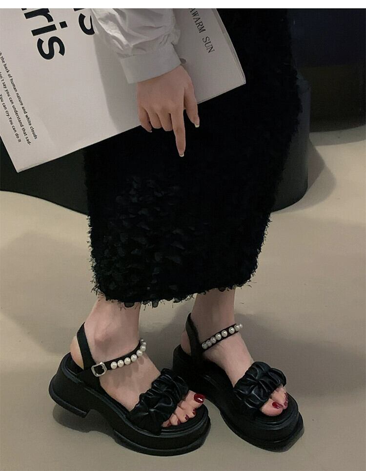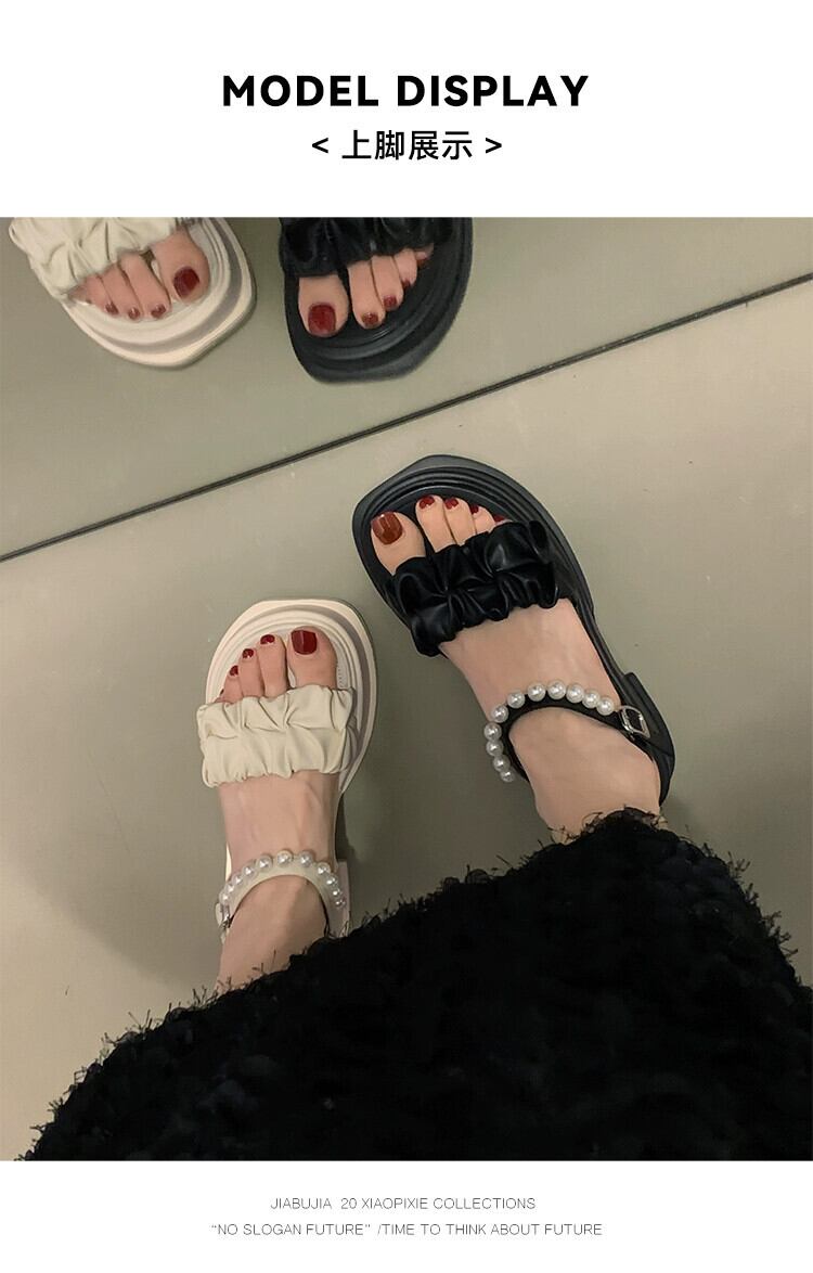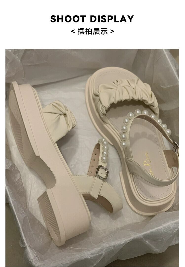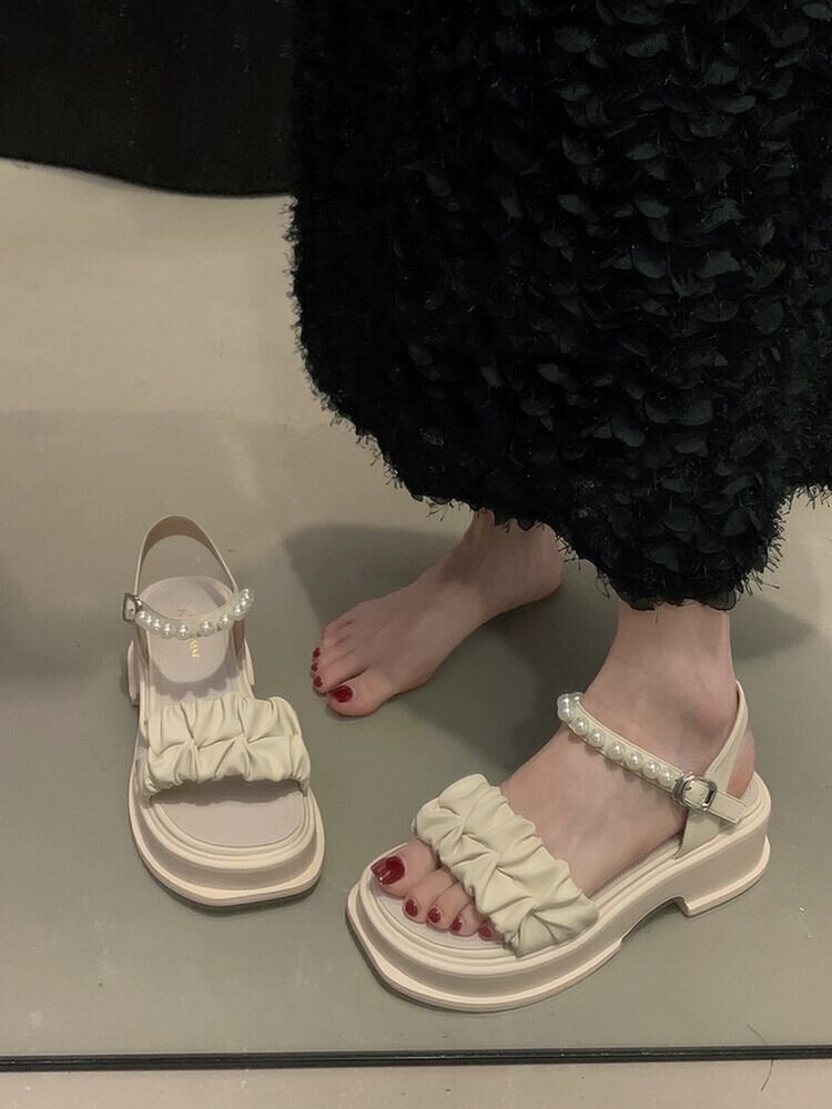 靴レディースサンダル 2023 夏の新ファッションオールマッチレトロパールバックル厚底ワンワードビーチサンダル シューズ サマー 夏物 真珠 jxjxf95806304565