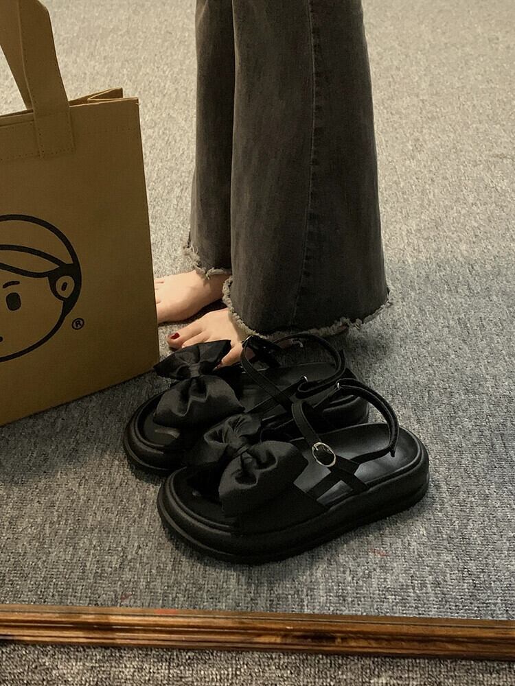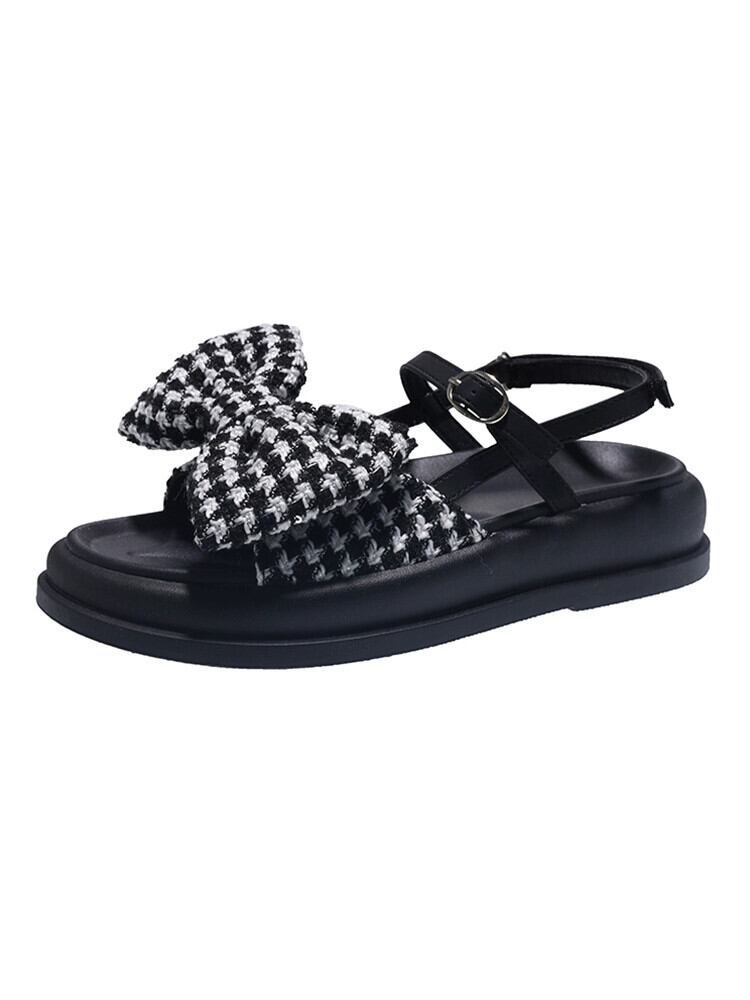 サンダル女性の夏の 2023 新しいファッションオールマッチレトロ千鳥格子弓気質厚底ビーチシューズ 靴 リボン サマー 夏物 jxjxf89126642903
