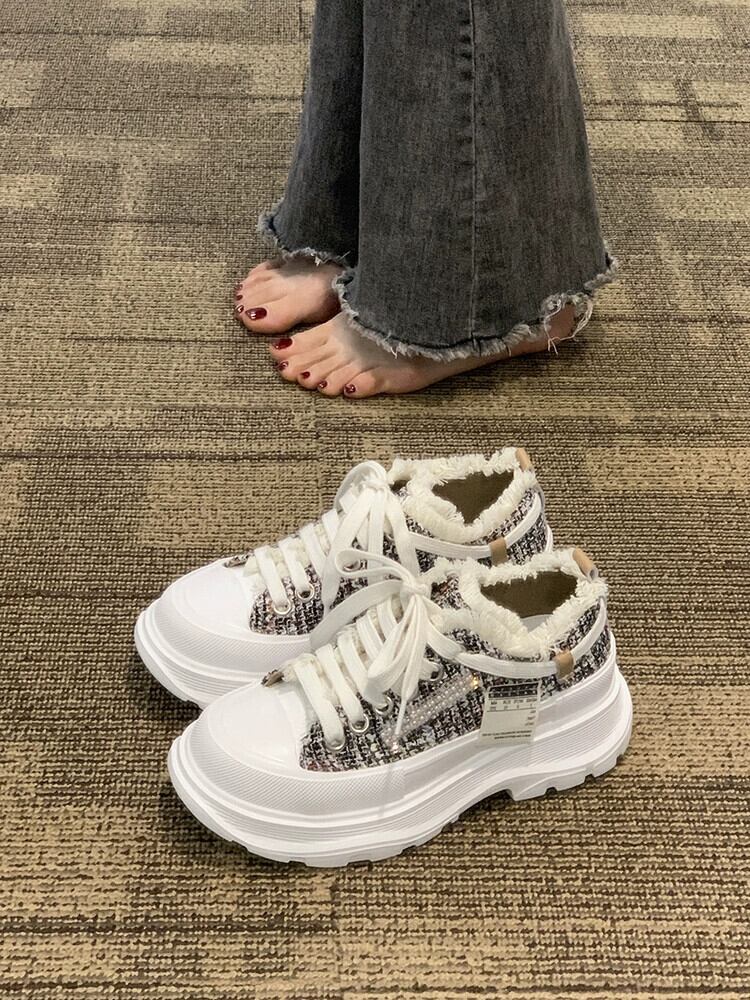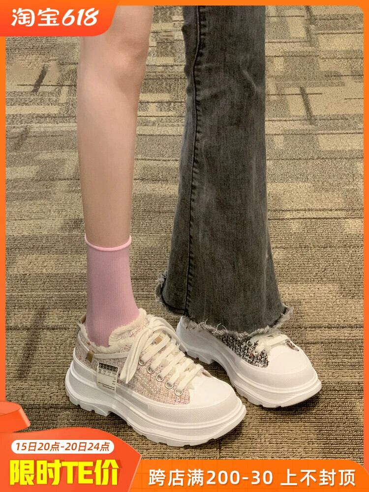 Jiabu 偽スニーカーレディース 2023 春と秋の新トレンドファッションオールマッチレトロロートップ厚底カジュアルスニーカー 靴 シューズ スプリング 春物 オータム 秋物 jxjxf77487143399