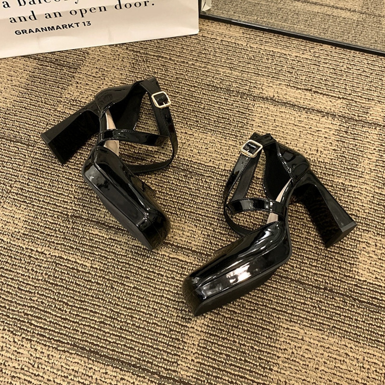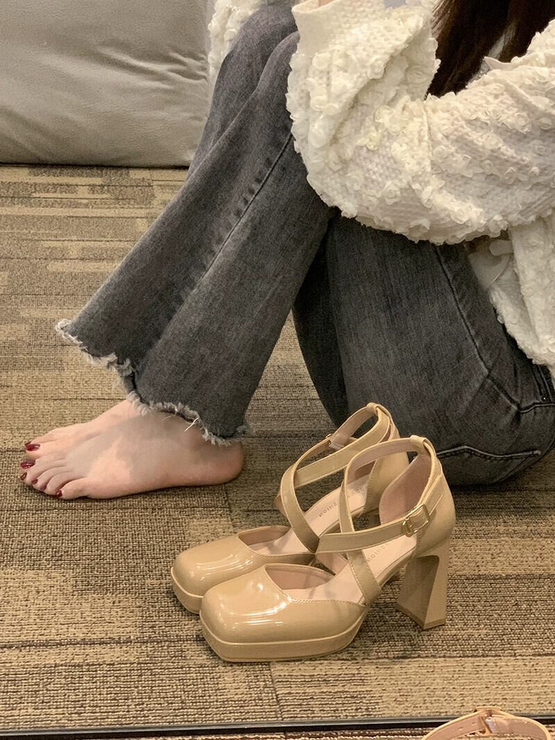 シングルシューズ女性の 2023 夏の新しいファッション気質シンプルで多用途なフランスの太いヒールスクエアトゥハイヒールトレンド 靴 サマー 夏物 スクウェア jxjxf94903889616
