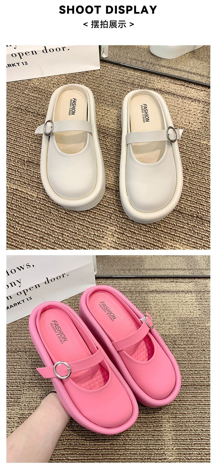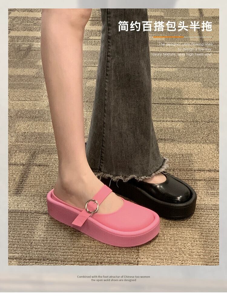 包頭セミスリッパ女性の 2023 夏の新ファッションレトロなスタイルの小さな厚底滑り止めサンダルとスリッパ潮 ミュール 靴 シューズ サマー 夏物 jxjxf36604791448