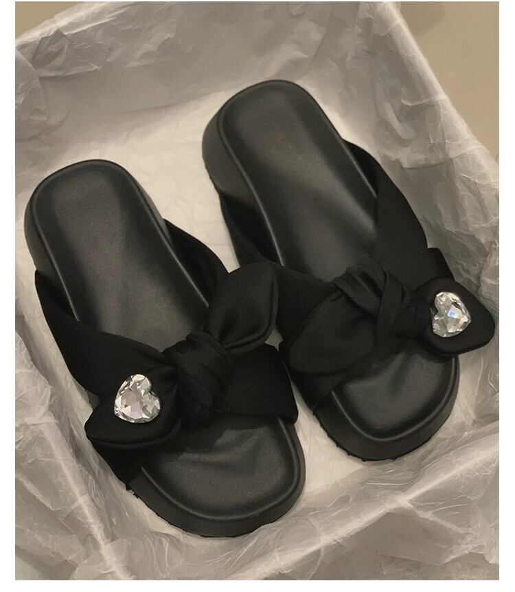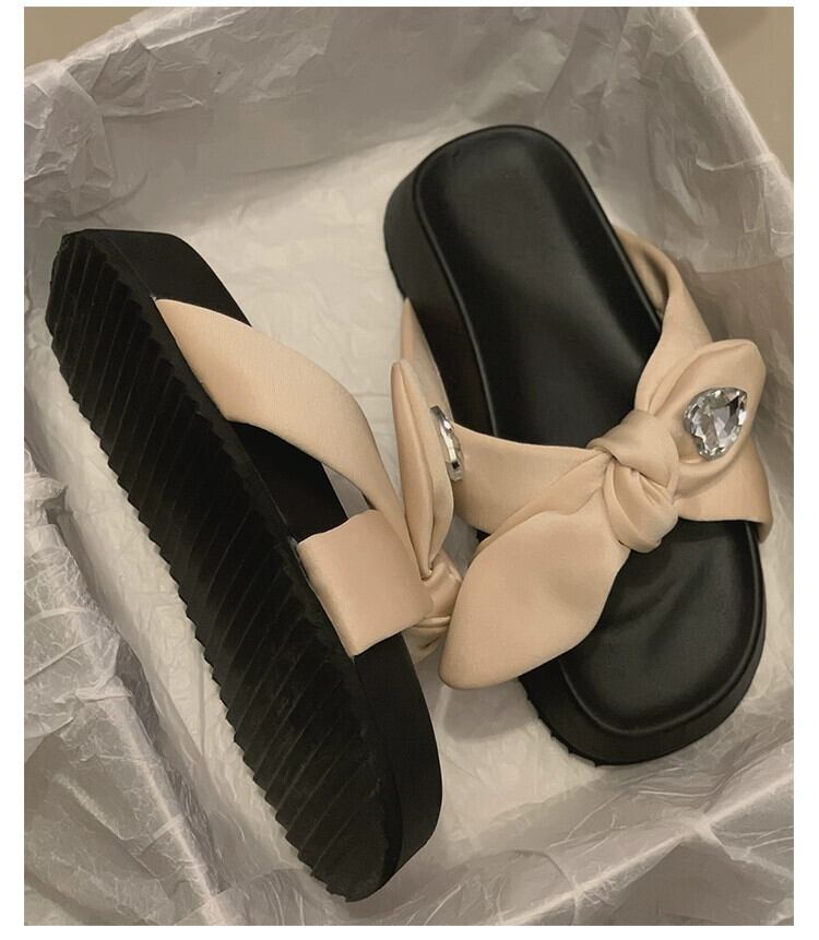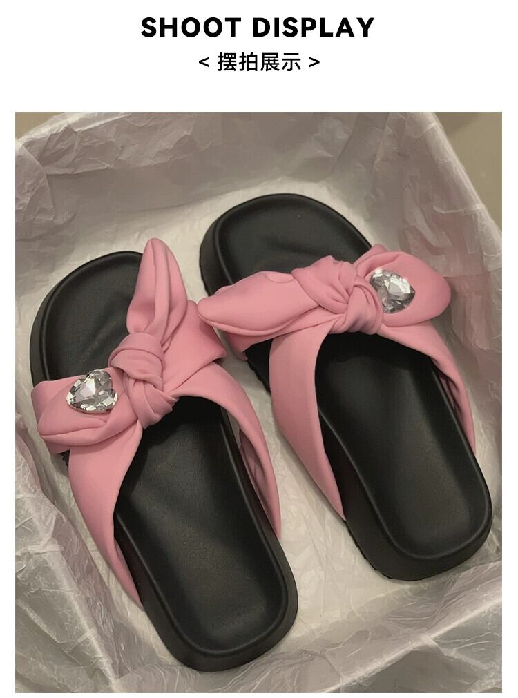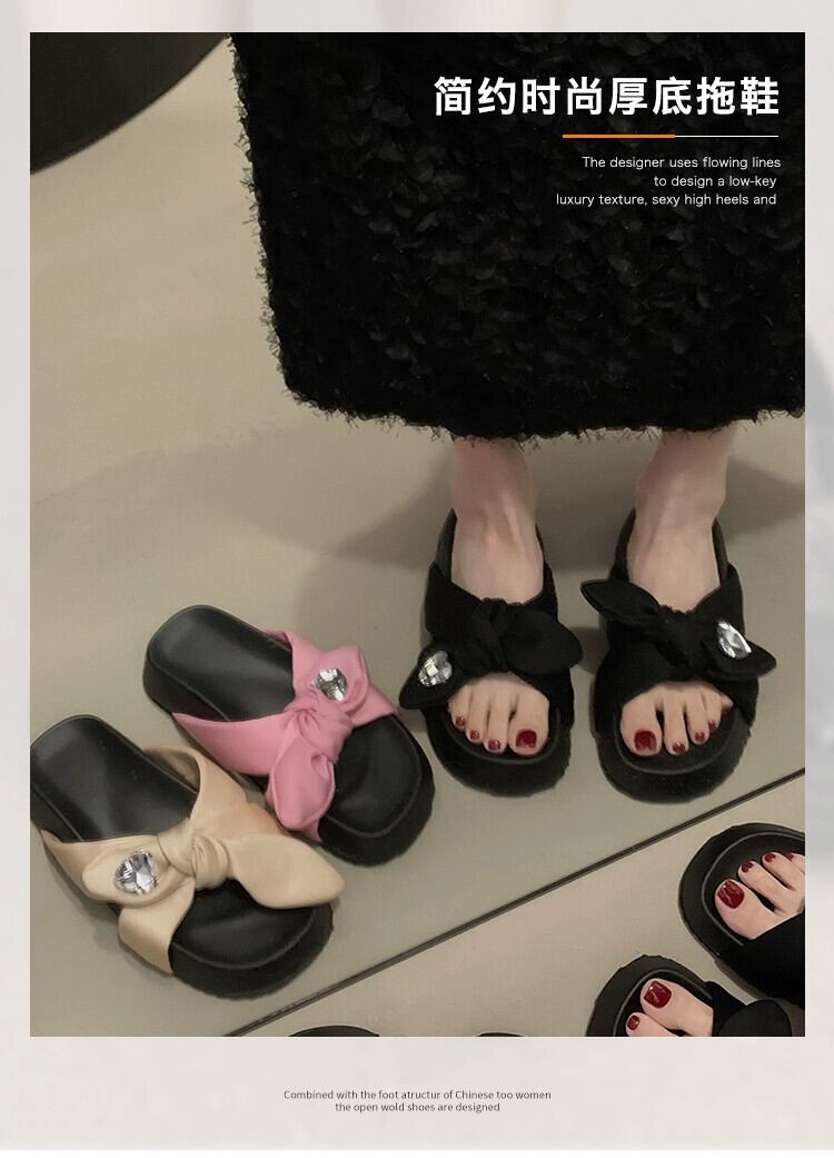 お出かけスリッパレディース 2023 夏の新ファッションオールマッチラインストーンリボン快適な厚底サンダルとスリッパ ミュール 靴 シューズ サマー 夏物 jxjxf67454438087