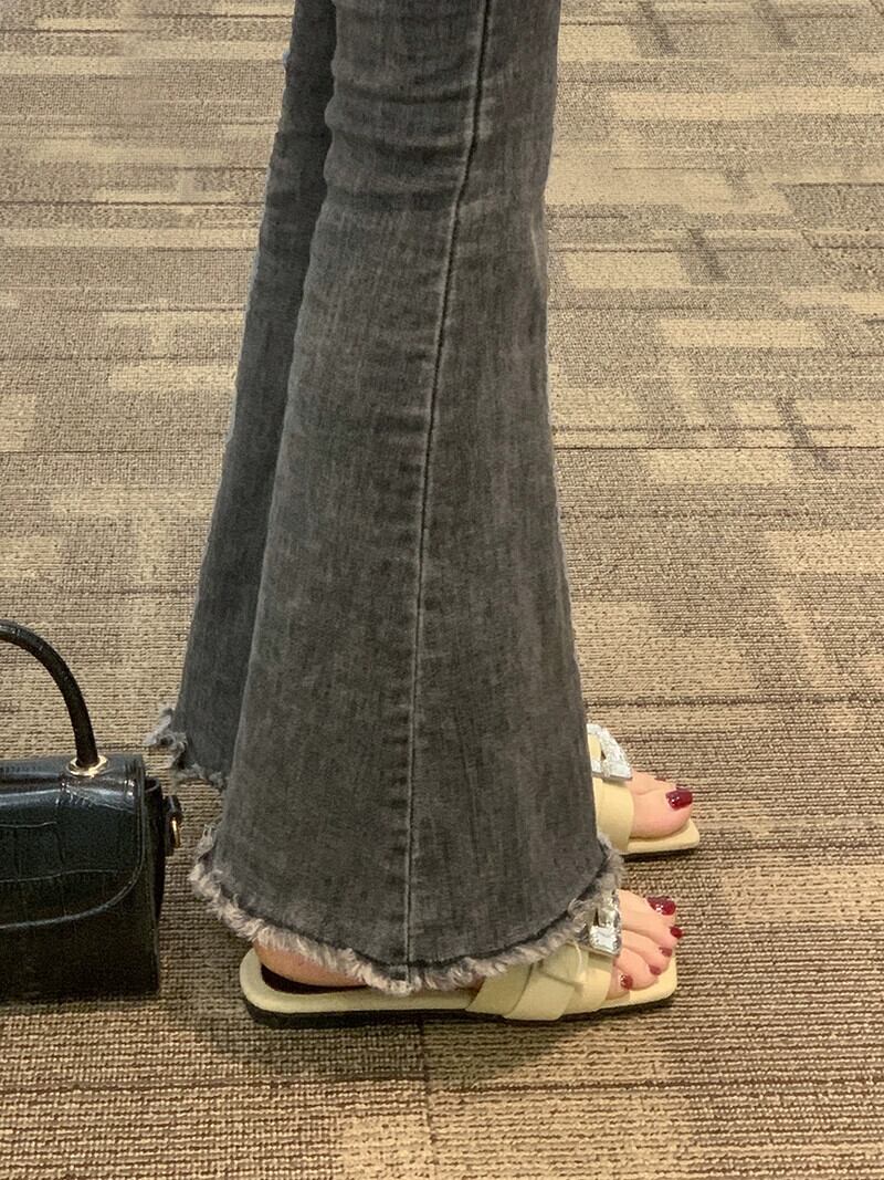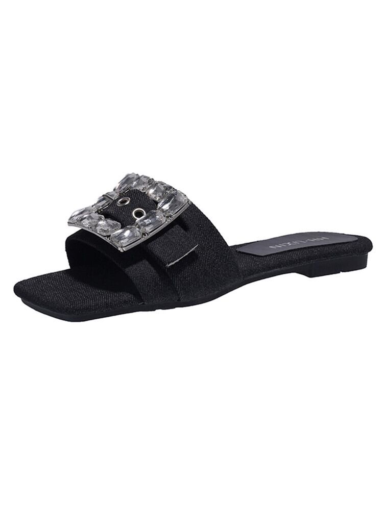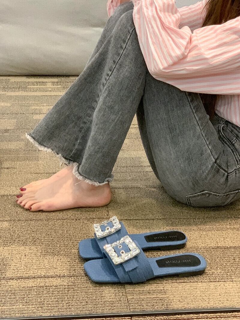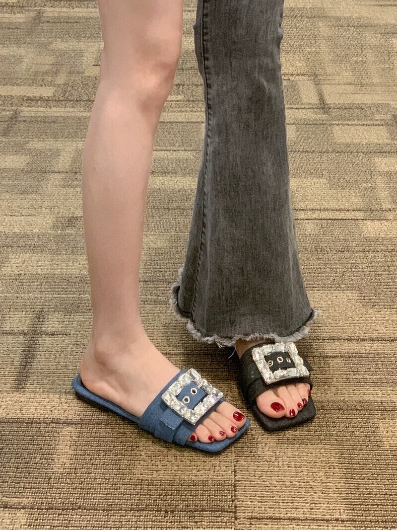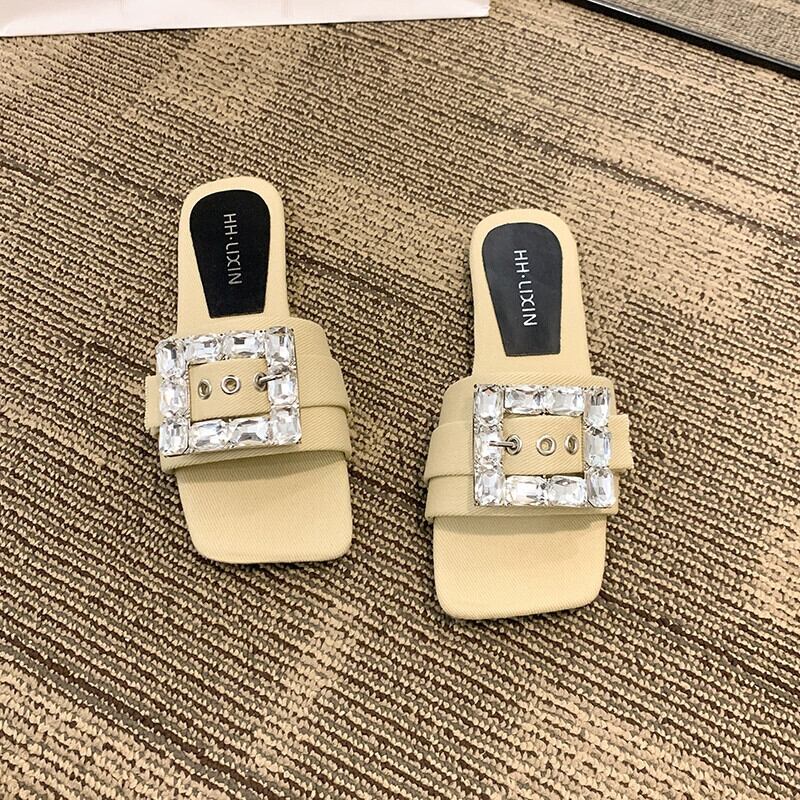 2023 年アウター夏レディーススリッパ新しいスーパーオールマッチレトロアインスタイルラインストーン平底ファッショナブルなスリッポントレンド ミュール 靴 シューズ サマー 夏物 jxjxf60190467751