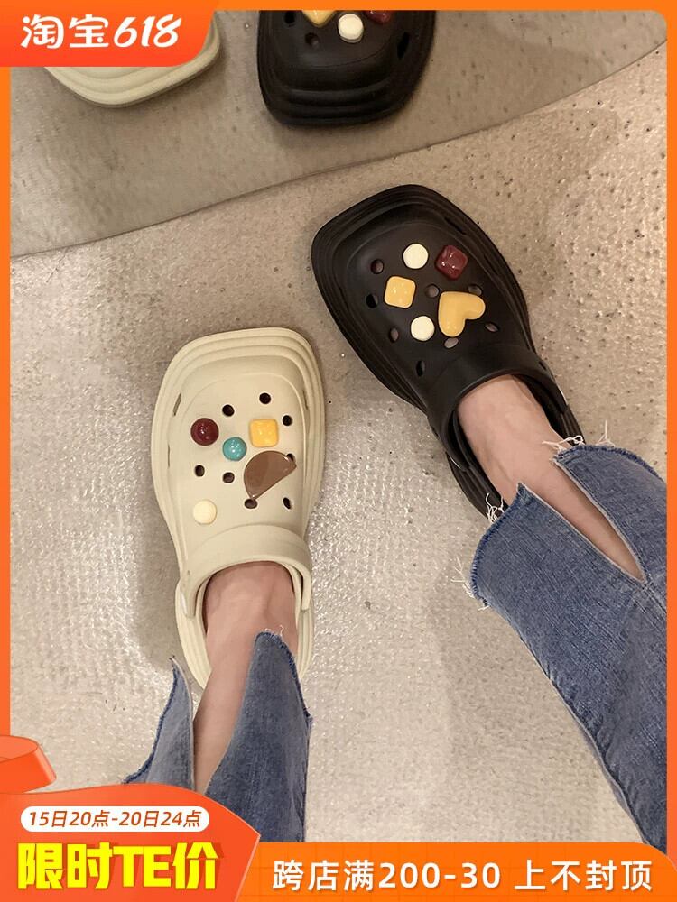 ホールシューズ包頭サンダル女性の 2023 夏の新ファッションオールマッチ漫画二着用厚底スクエアトゥサンダルとスリッパ 靴 ミュール サマー 夏物 スクウェア jxjxf24789657668