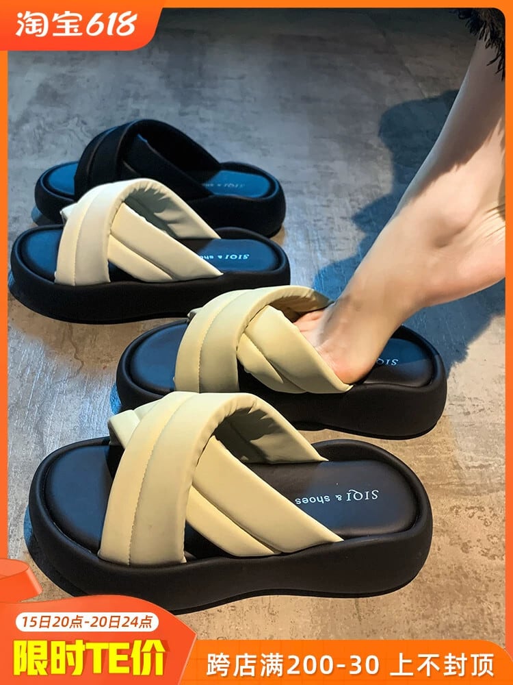 アウタースリッパ夏の女性の 2023 新しいファッションオールマッチレトロクロスワード厚底カジュアルサンダルとスリッパトレンド ミュール 靴 シューズ サマー 夏物 jxjxf13495113246