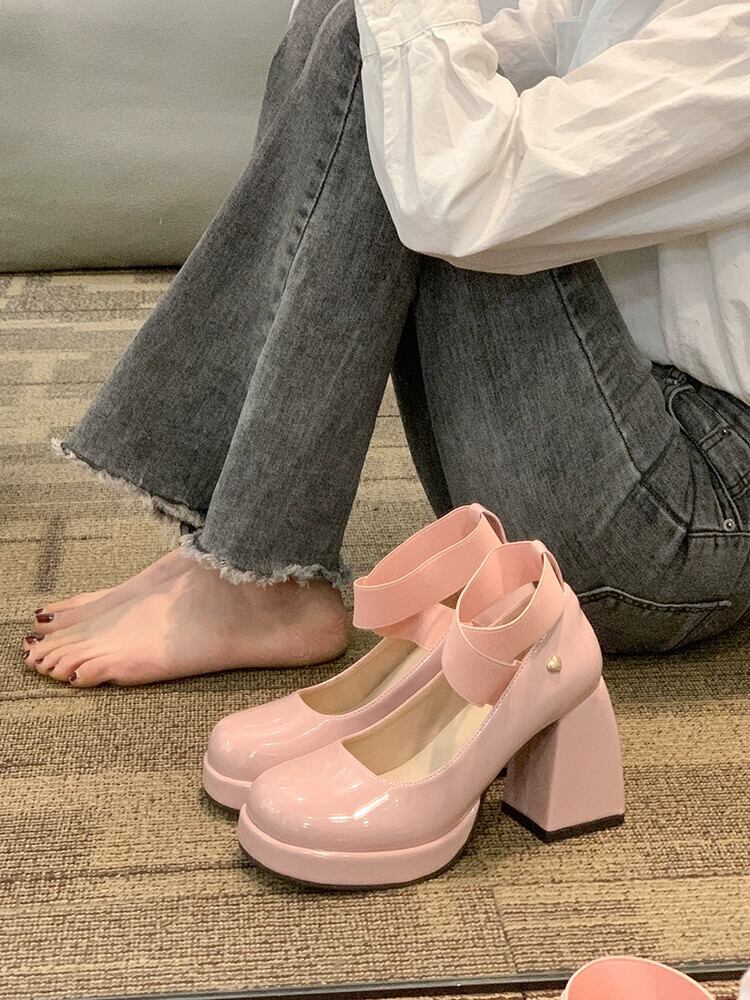 シングルシューズ女性の 2023 春の新スーパーファッションオールマッチスイートアインスタイルハイヒールラウンドトゥメリージェーンシューズ 靴 大人ガーリー スウィート キュート カジュアル スプリング 春物 jxjxf39522153071