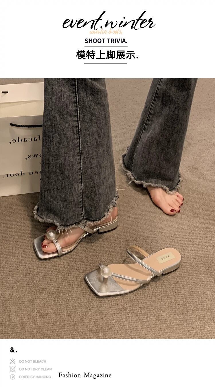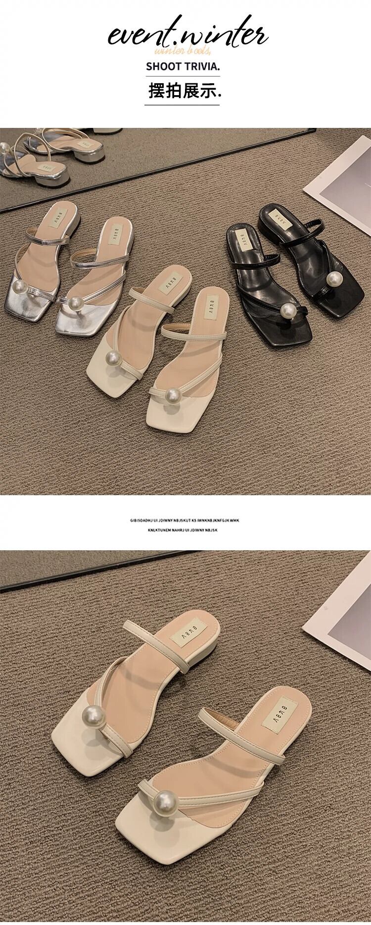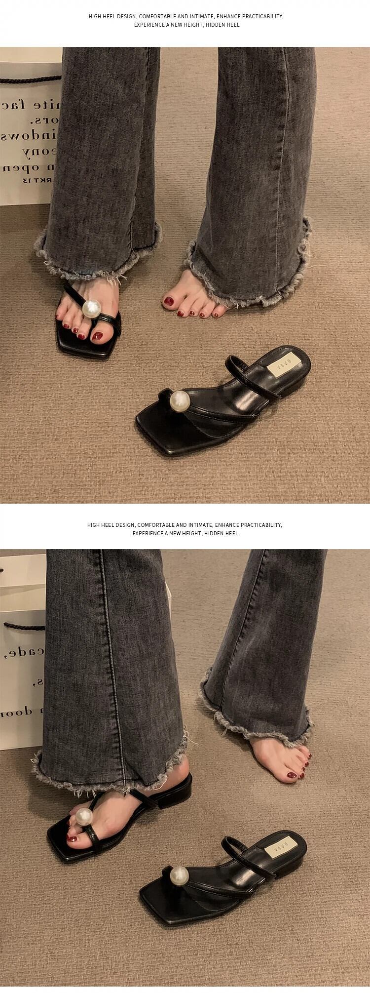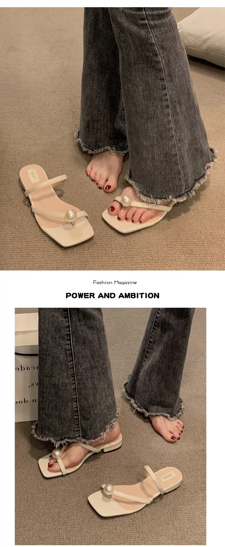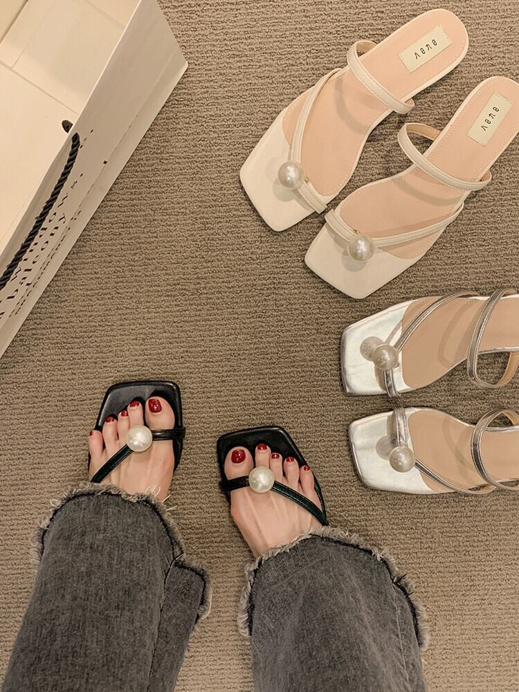 アウタースリッパレディース 2023 夏の新ファッションオールマッチレトロパール厚いヒールノンスリップスリッポンサンダルとスリッパトレンド ミュール 靴 シューズ サマー 夏物 真珠 jxjxf28487030455