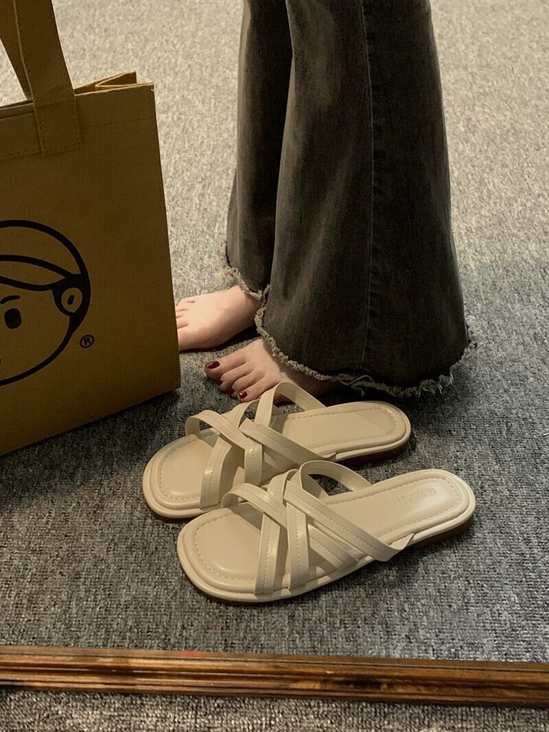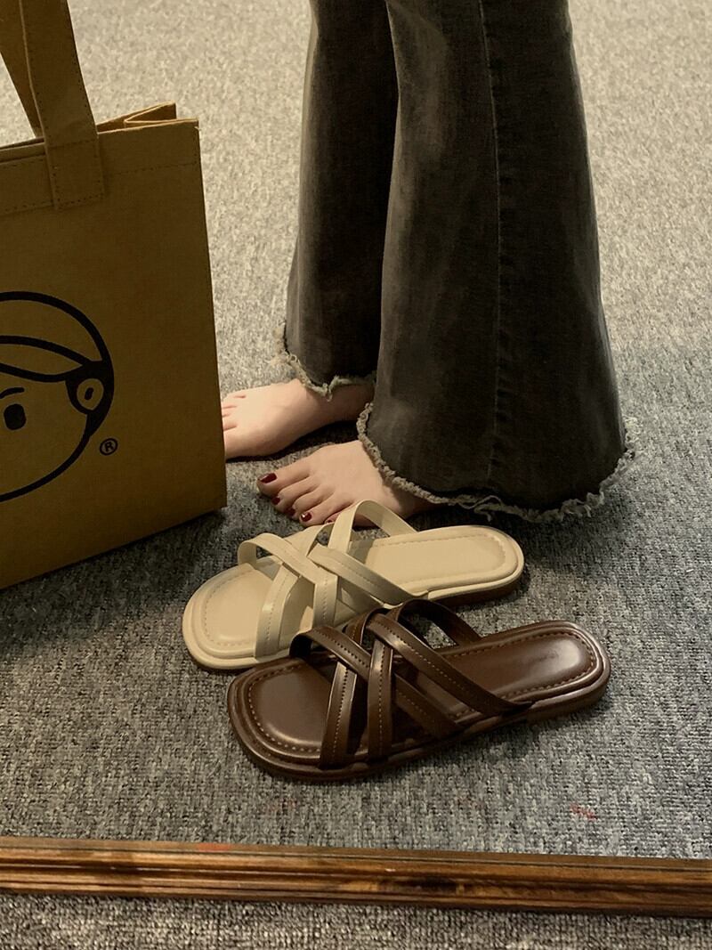 お出かけスリッパ女性 2023 夏の新ファッションオールマッチレトロ織りフラットノンスリップ comtable ビーチサンダル潮 ミュール 靴 シューズ サマー 夏物 jxjxf26914538520