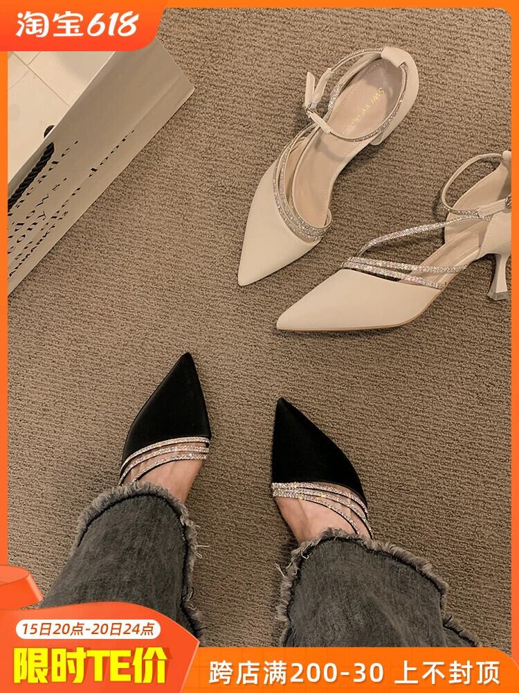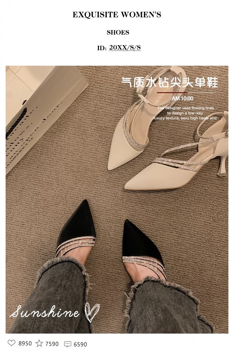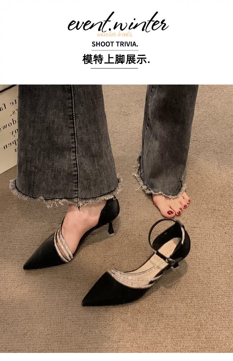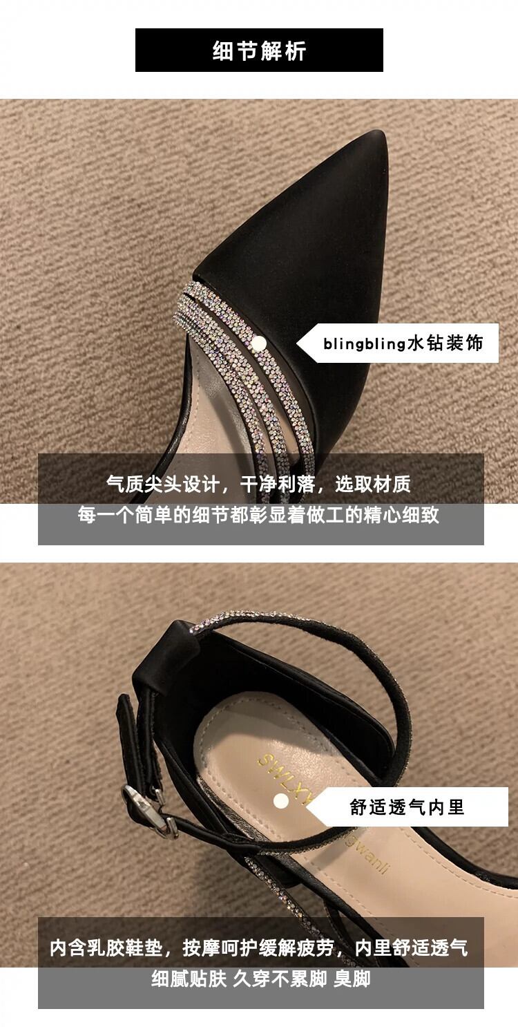 ポインテッドトゥシングルシューズレディース 2023 春の新作ネットレッドオールマッチ eign スタイルレトロラインストーン小剣フェアリースタイルハイヒール 靴 スプリング 春物 jxjxf22555116172