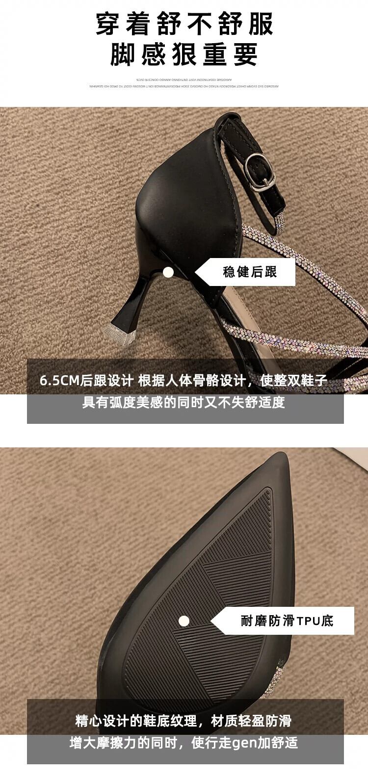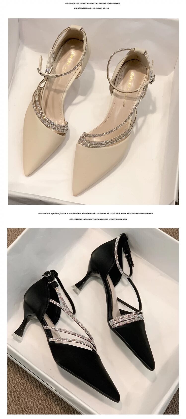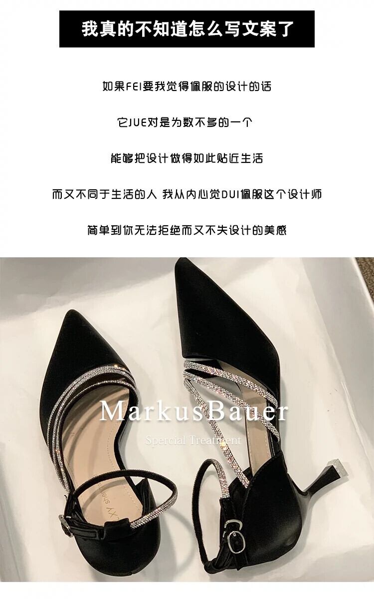 ポインテッドトゥシングルシューズレディース 2023 春の新作ネットレッドオールマッチ eign スタイルレトロラインストーン小剣フェアリースタイルハイヒール 靴 スプリング 春物 jxjxf22555116172
