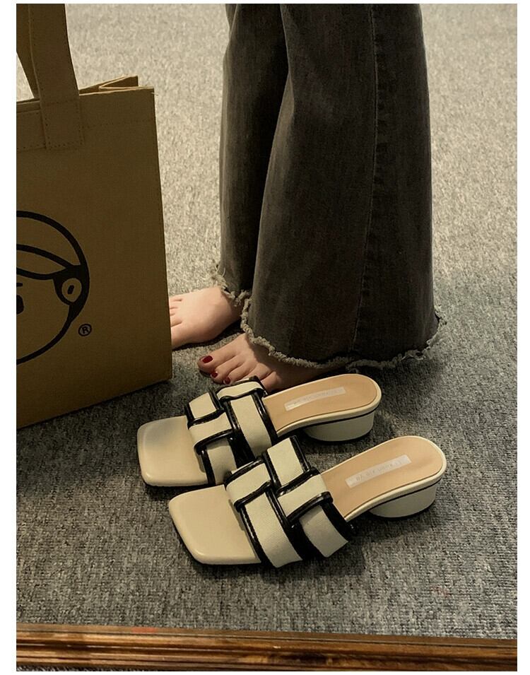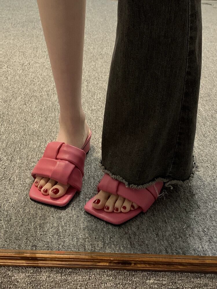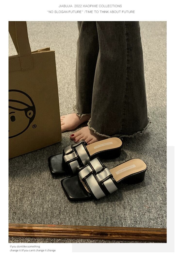 お出かけスリッパレディース2023年夏新作超ファッションオールマッチ編み込み太いヒール滑り止め気質スリッポントレンド ミュール 靴 シューズ サマー 夏物 jxjxf65791610489