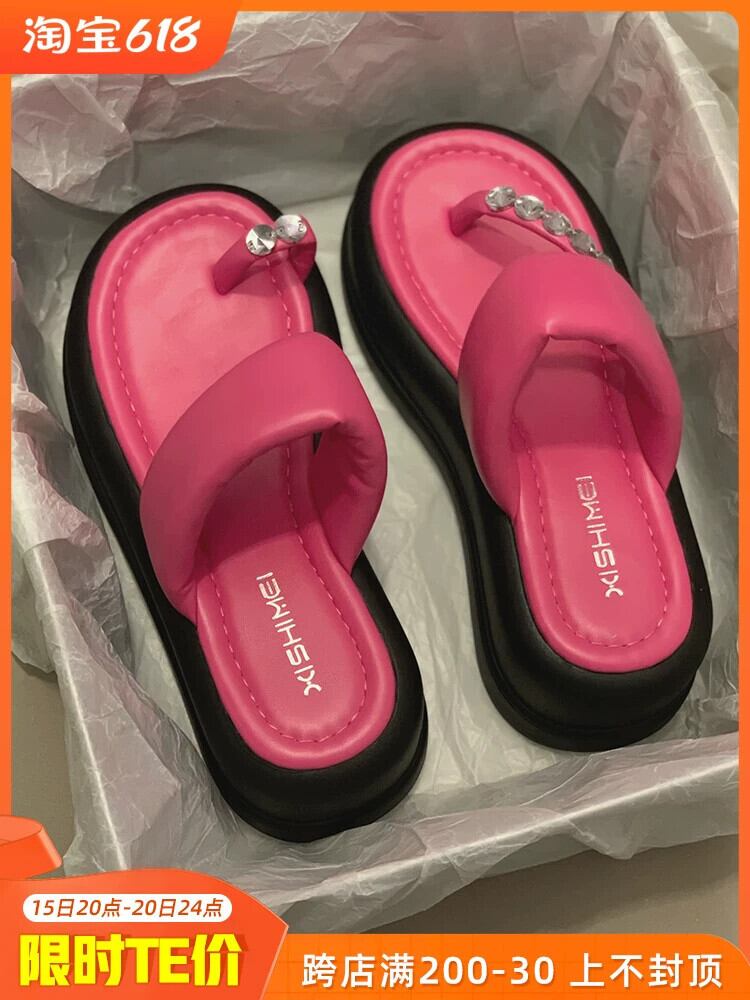 インターネットセレブスリッパレディースアウター 2023 夏の新ファッションオールマッチアインスタイルスパンコール厚底レトロサンダルとスリッパトレンド ミュール 靴 シューズ サマー 夏物 jxjxf69570156735