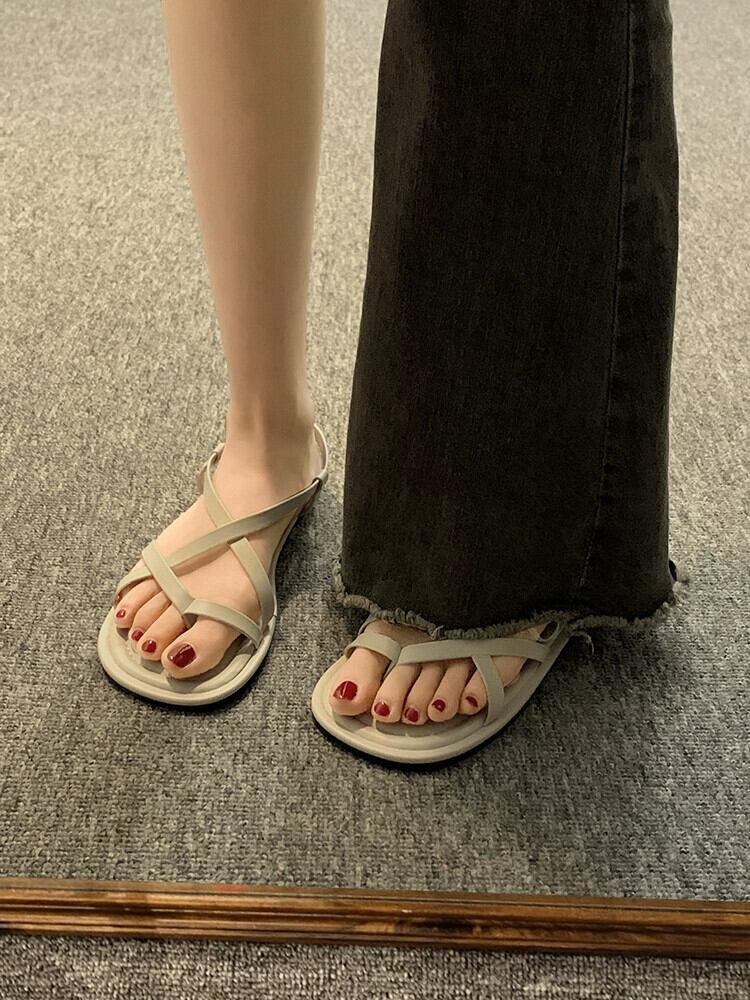 インターネットセレブサンダルレディース 2023 夏の新スーパーファッションオールマッチレトロセットトゥフラット comtable ローマンシューズトレンド 靴 サマー 夏物 jxjxf21504412298