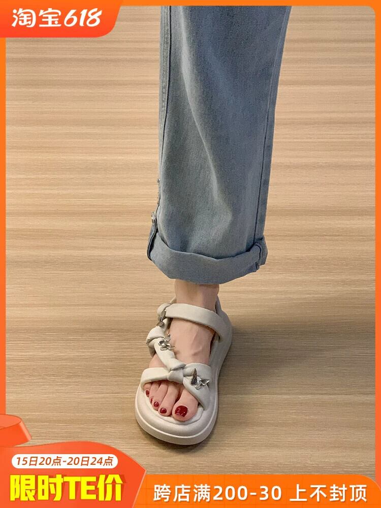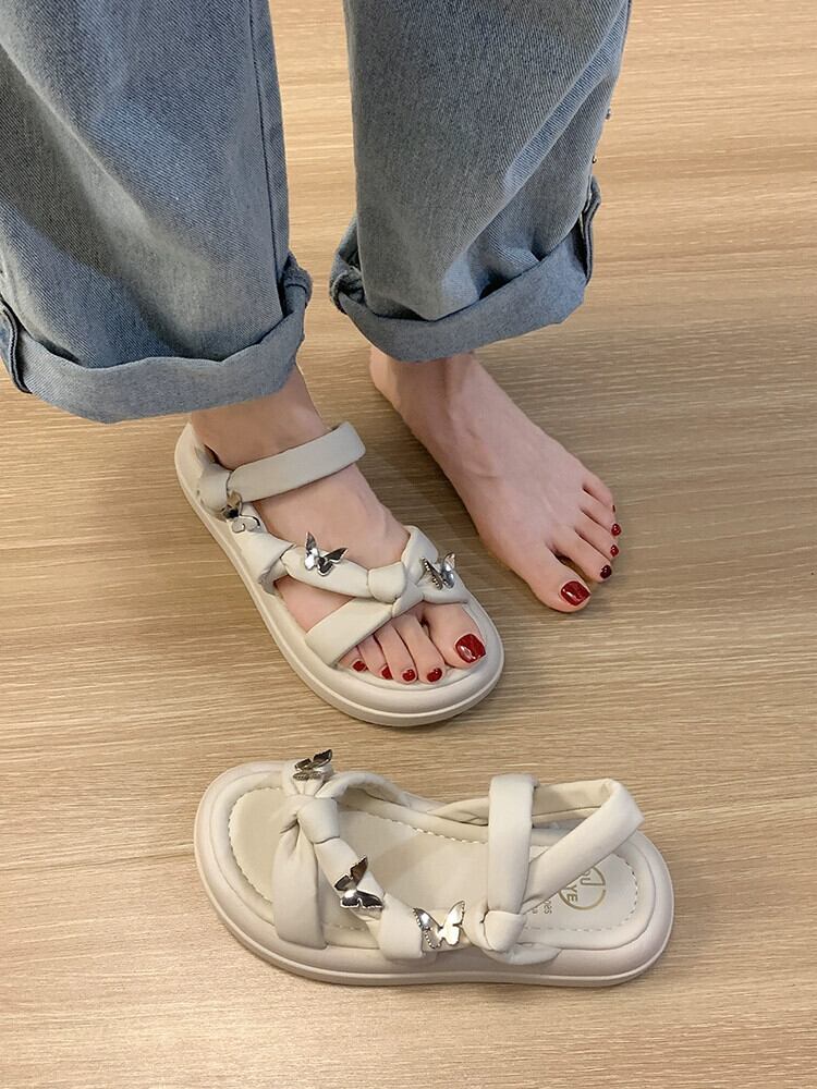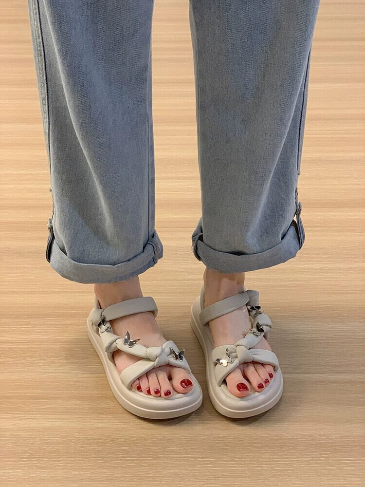 靴の女性のサンダル 2023 夏の新ファッションレトロな eign スタイル蝶小さな厚底ノンスリップビーチシューズ サマー 夏物 jxjxf86082177566