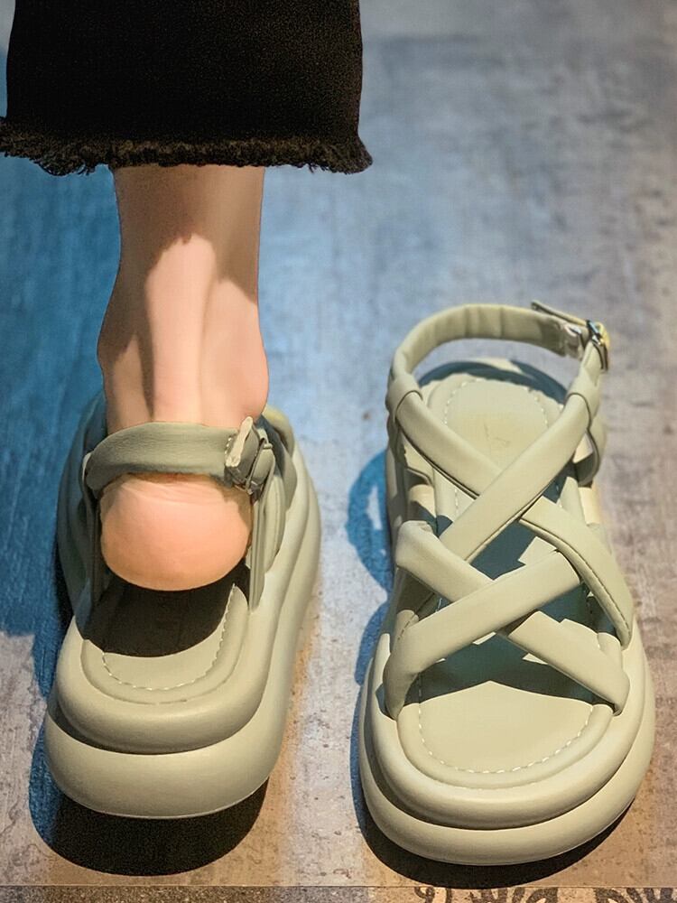 Jiabu 偽ローマサンダル女性の 2023 夏の新ファッションオールマッチ織り厚底ノンスリップカジュアルビーチシューズ 靴 サマー 夏物 jxjxf13603124582
