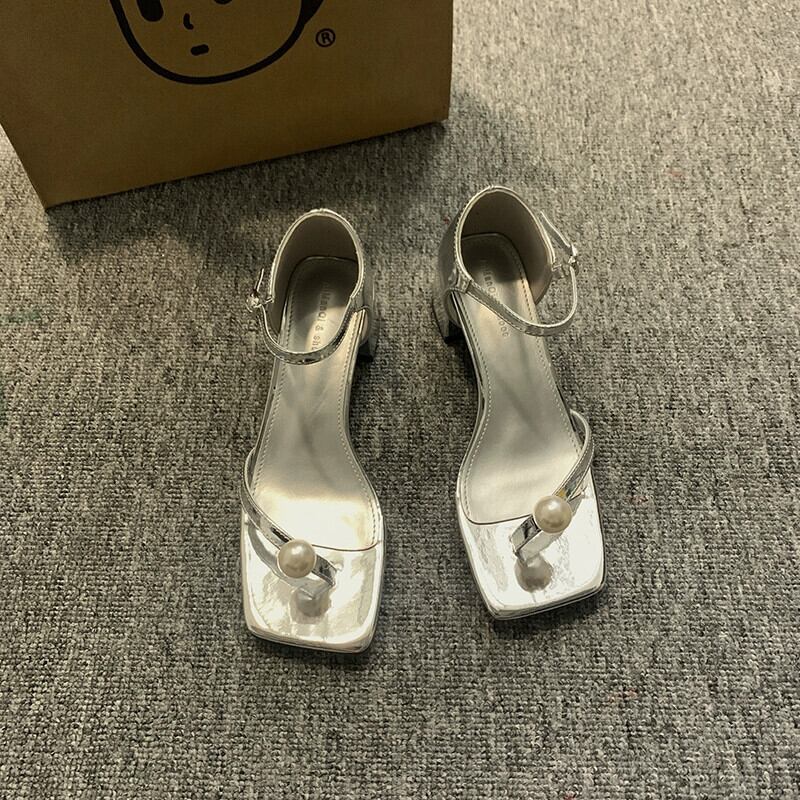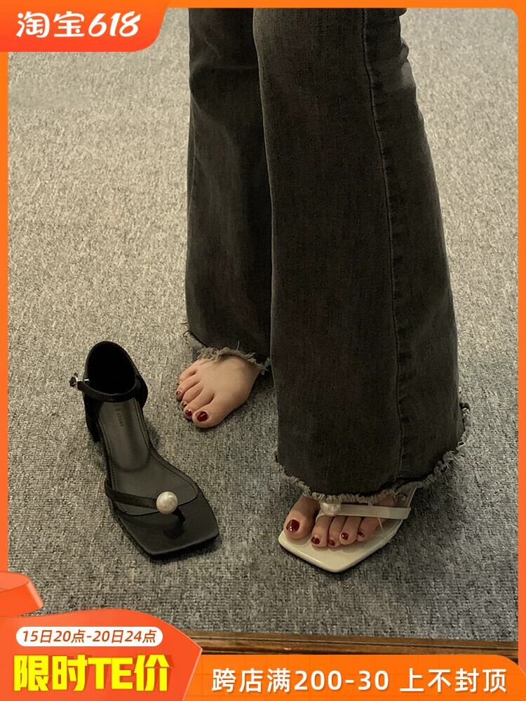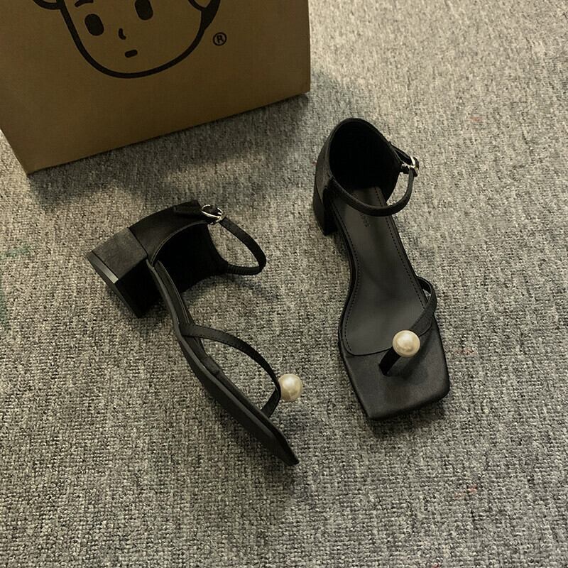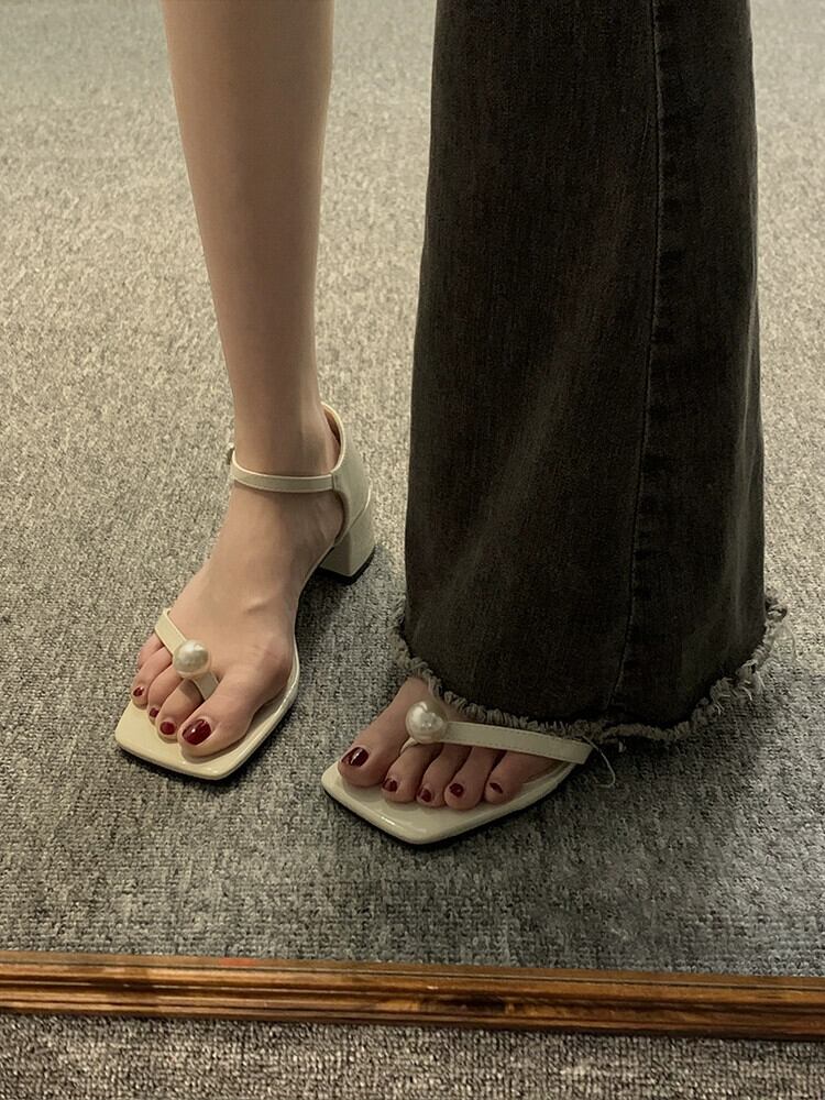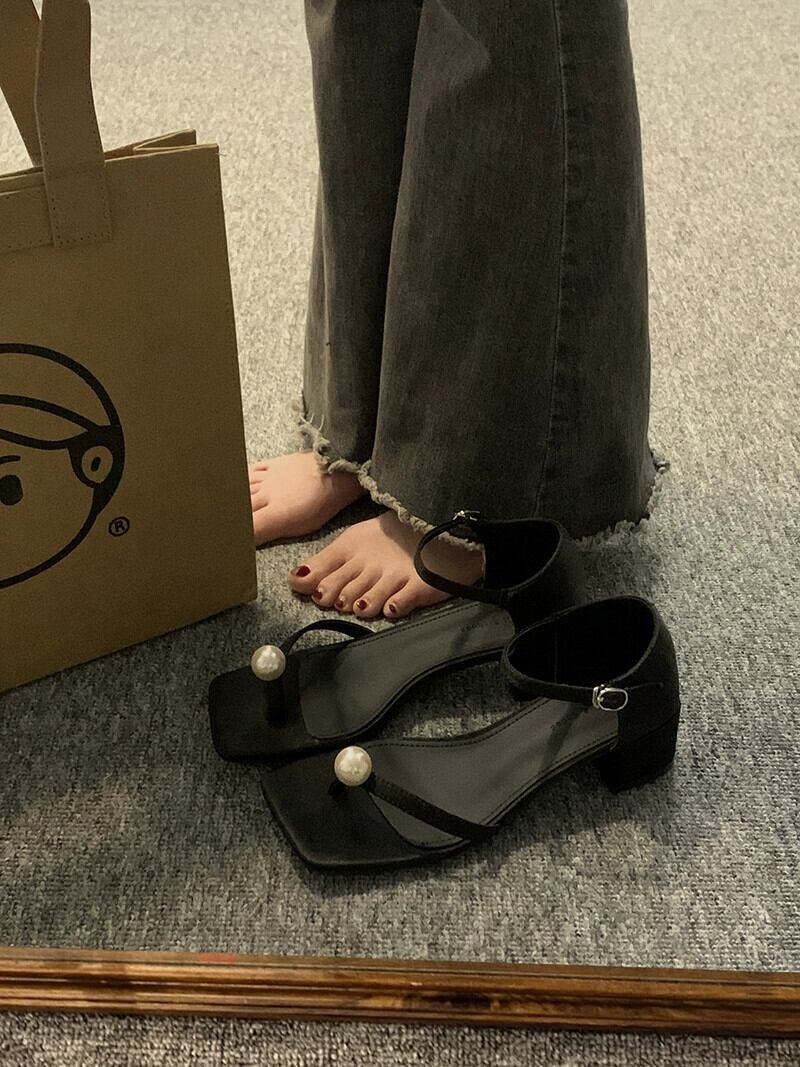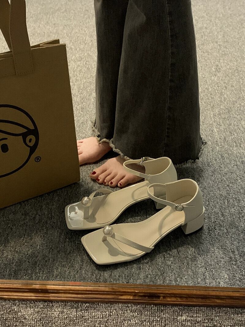 ネットレッドサンダルの女性の 2023 夏の新ファッションオールマッチレトロパールひも厚いヒールウエスタンスタイルローマンシューズトレンド 靴 サマー 夏物 真珠 jxjxf34722706848