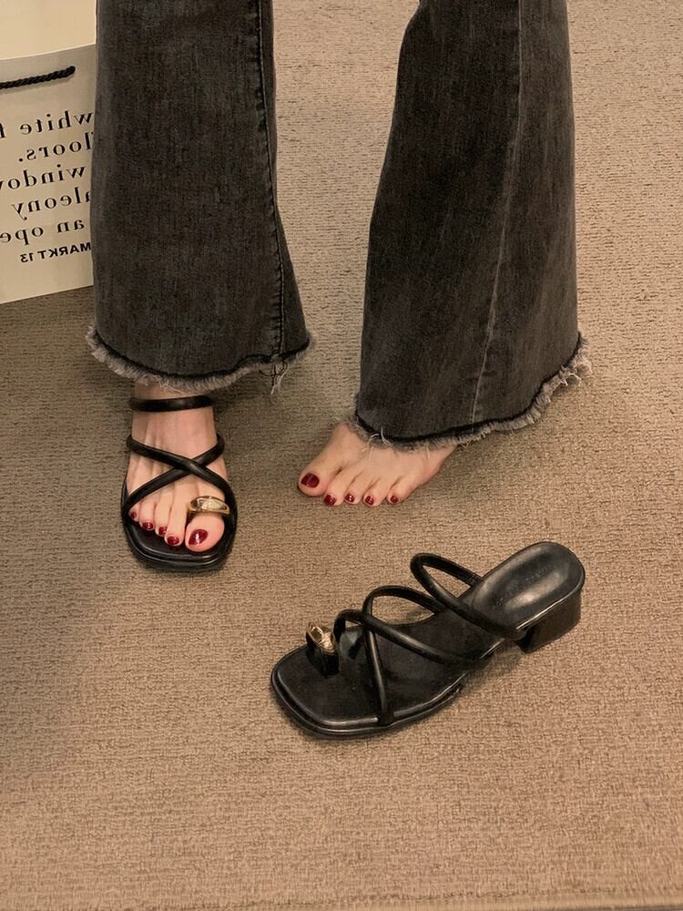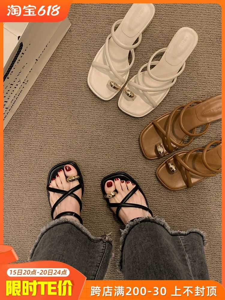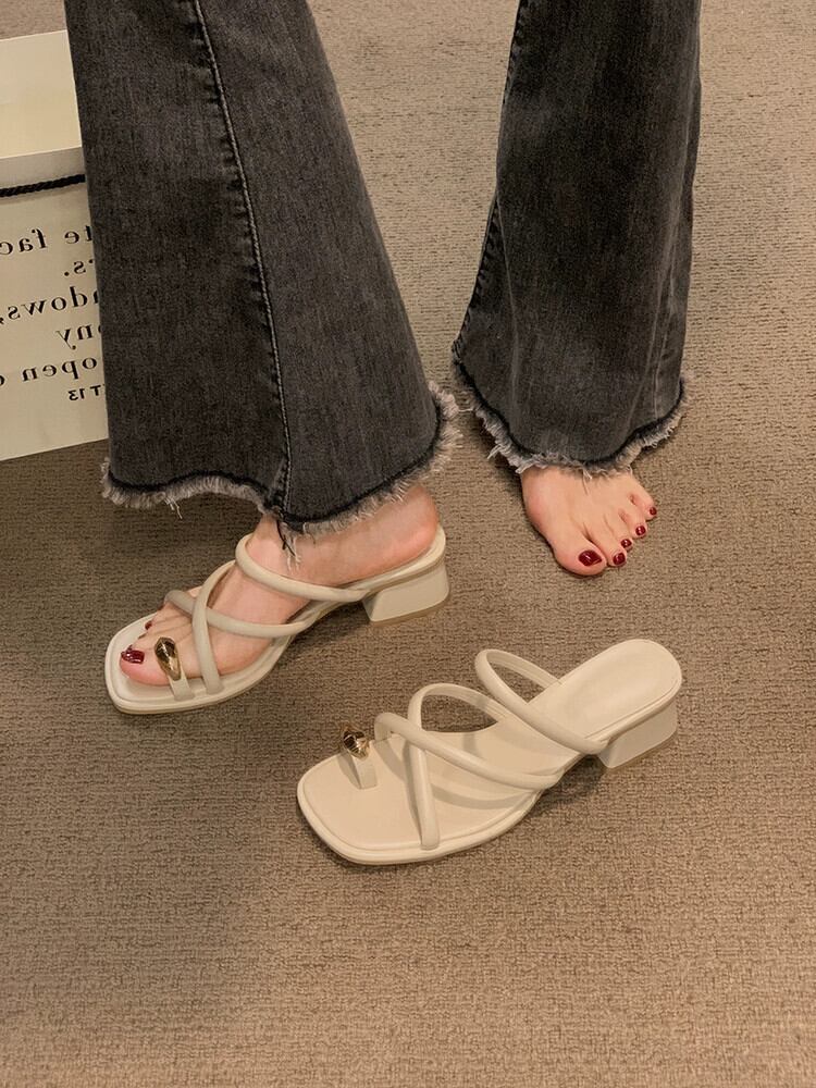 セットトゥスリッパレディースアウター 2023 夏の新ファッションオールマッチ小さな厚いヒール滑り止めレトロサンダルとスリッパ ミュール 靴 シューズ サマー 夏物 jxjxf91992404434
