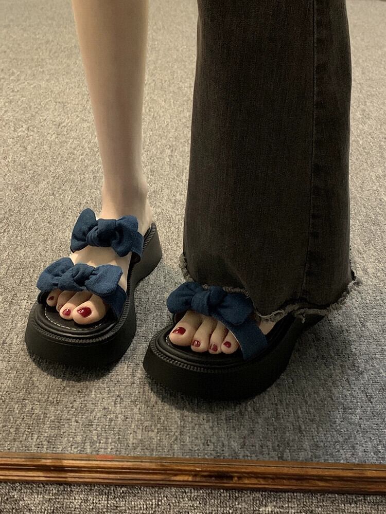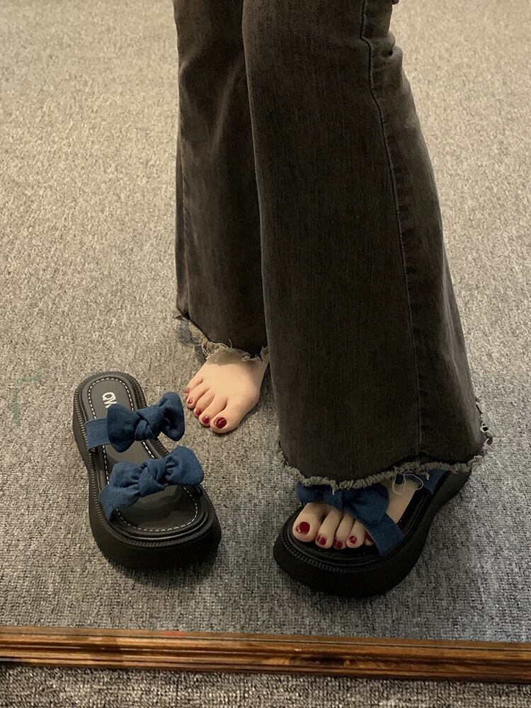 2023年の夏に出かけるスリッパ女性の新しいファッションオールマッチリボンフレンチレトロカジュアル厚底ビーチシューズ 靴 ミュール サマー 夏物 jxjxf18982362685