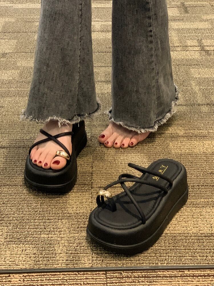 厚底気質スリッパ女性の2023年夏お出かけ新作ファッションオールマッチレトロアインスタイルセットトゥサンダルとスリッパトレンド ミュール 靴 シューズ サマー 夏物 jxjxf58586800188