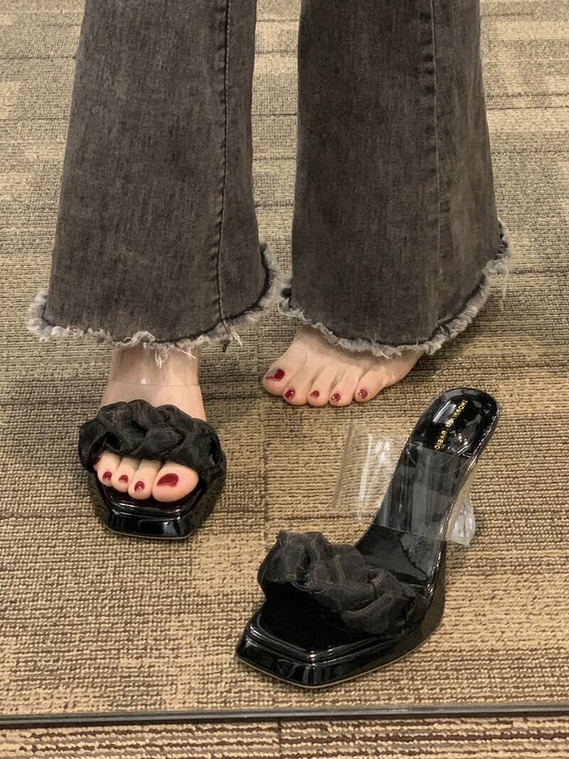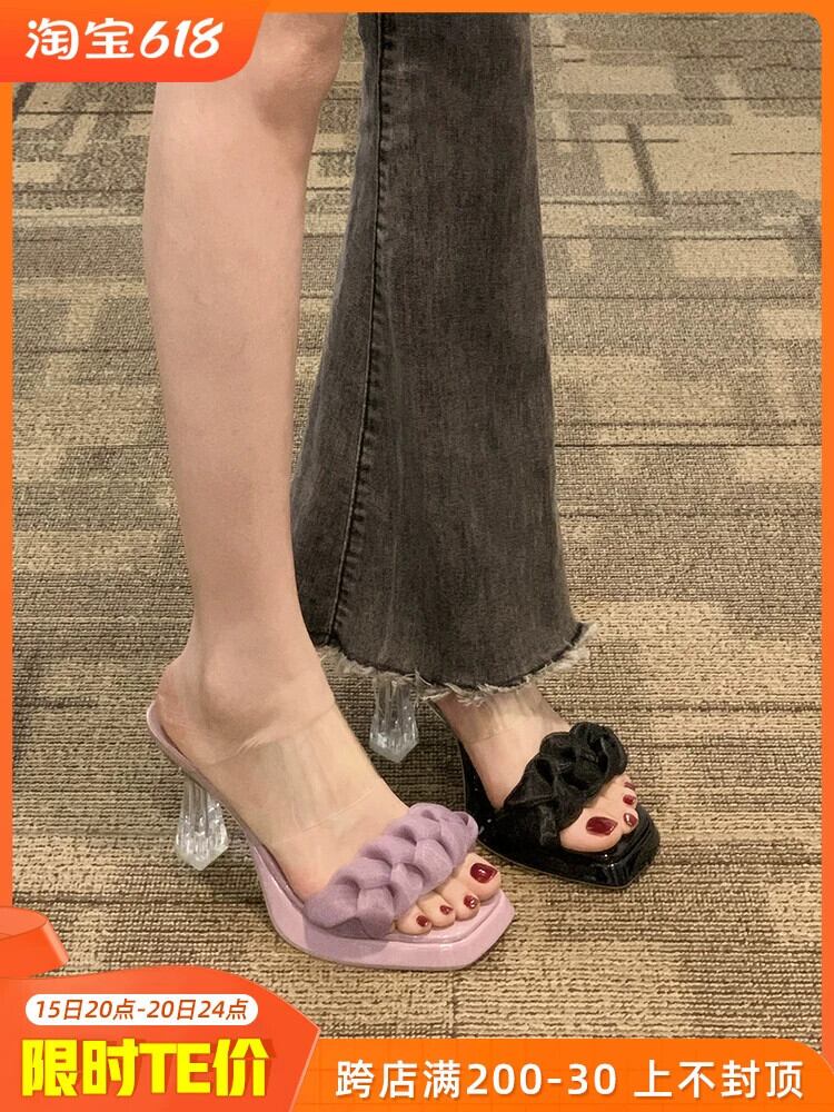 Jiabu 偽女性用スリッパは 2023 年の夏に登場します。新しいファッションはオールマッチの小さなハイヒールの妖精スタイルのビーチサンダルです。 靴 シューズ ミュール サマー 夏物 jxjxf74148553071