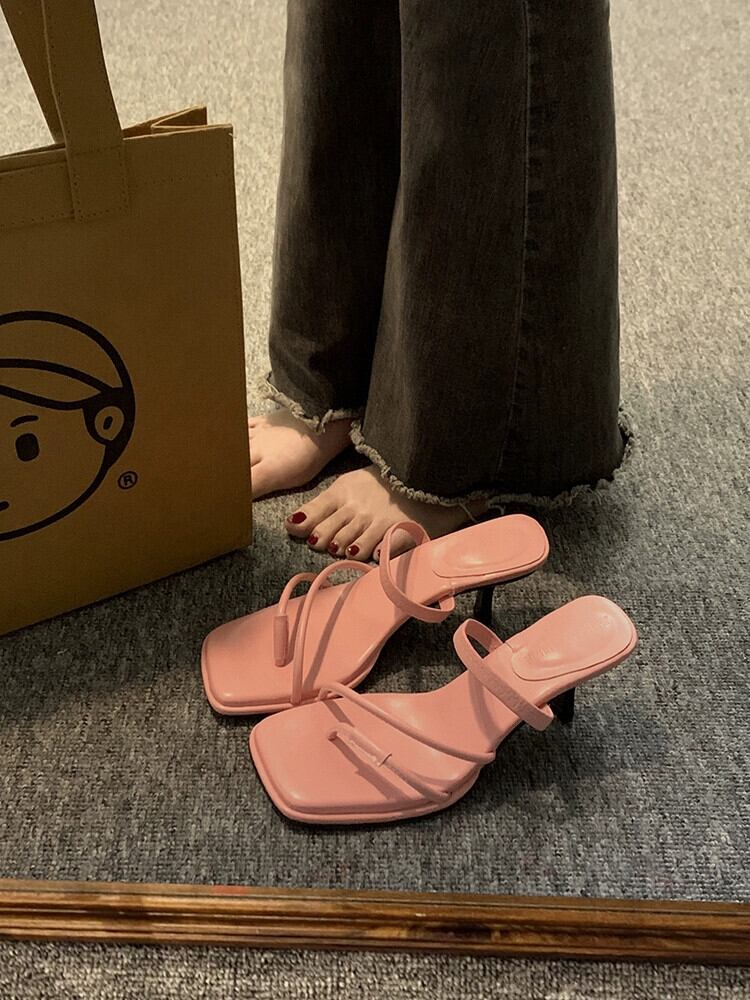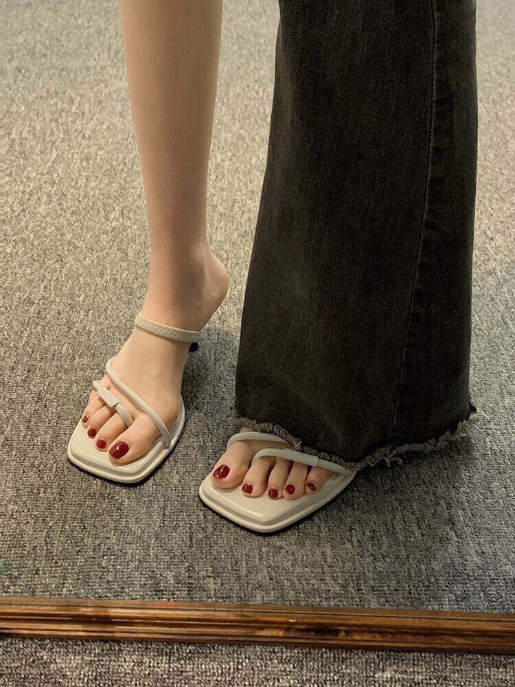 スティレットサンダルとスリッパレディース2023年の夏の新しいネットレッドファッションスーパーオールマッチハイヒールシューズトレンド 靴 ミュール サマー 夏物 jxjxf54966373569