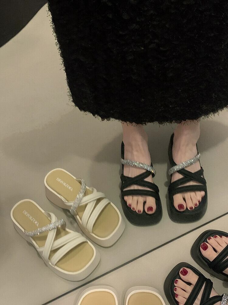 一言スリッパは2023年の夏に登場します、新しいファッションレトロフレンチオールマッチ増加カジュアルサンダルとスリッパ ミュール 靴 シューズ サマー 夏物 jxjxf46840271964