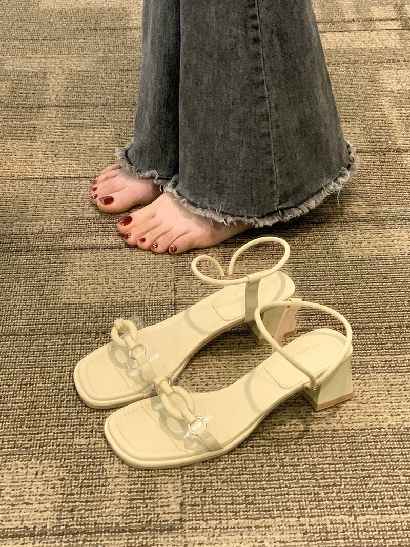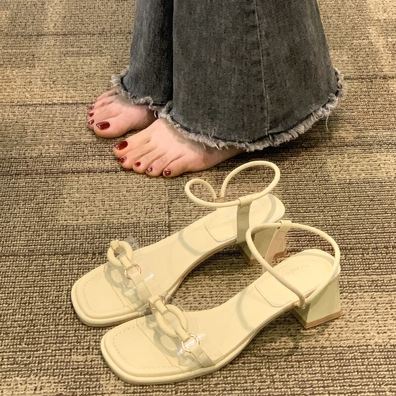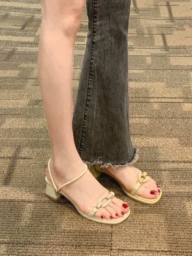 サンダル レディース 2023 夏の新ファッションオールマッチネットレッドレトロ eign スタイル太いヒール滑り止め一言ハイヒール 靴 シューズ サマー 夏物 スリッポン jxjxf44045657451