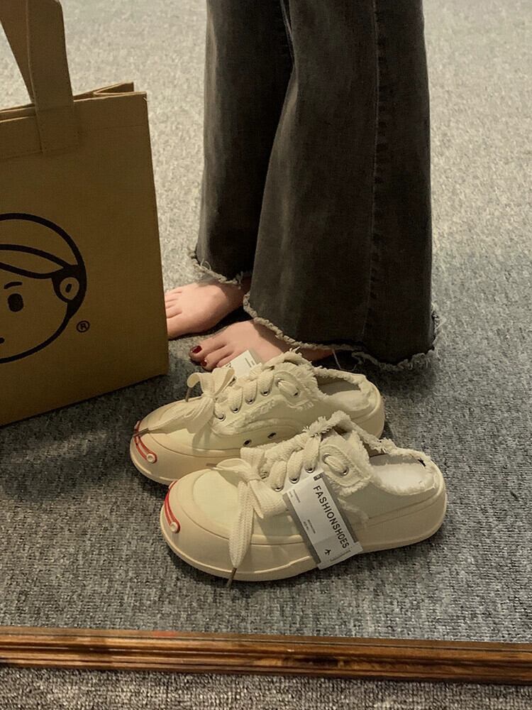 Baotou ハーフスリッパ レディース 2023 夏の新作ファッションオールマッチトレンディなキャンバススリッポン厚底サンダルとスリッパトレンド ミュール 靴 シューズ サマー 夏物 jxjxf13718067383