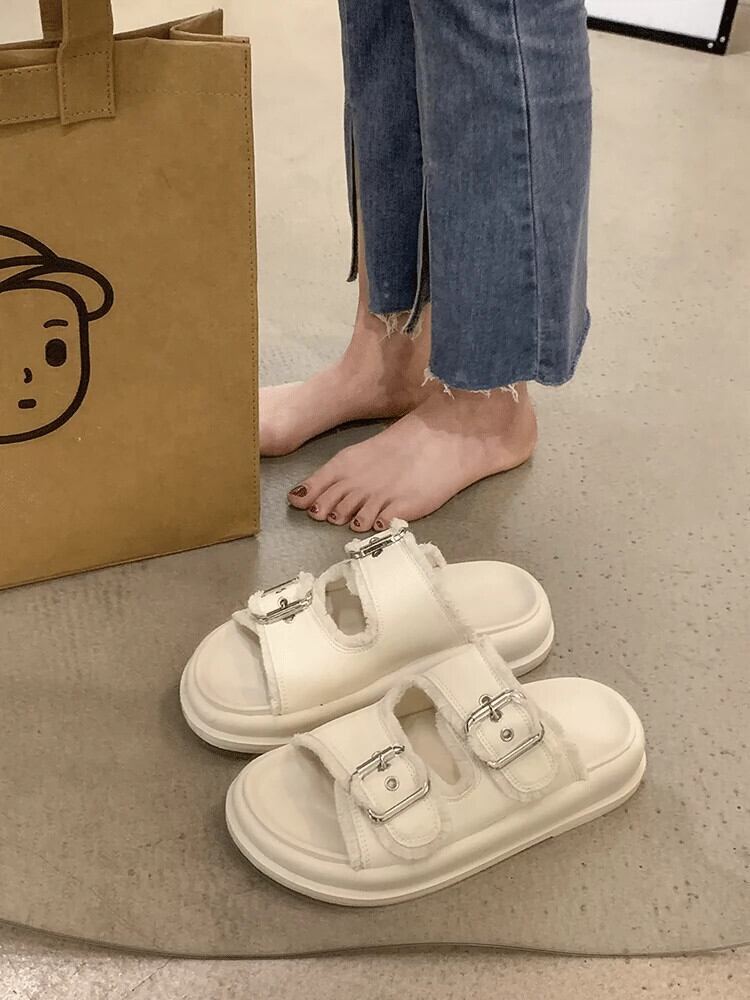 スリッパ着用夏の女性の 2023 新しいファッションオールマッチシンプルなベルトバックルカジュアル厚底ワードサンダルとスリッパ ミュール 靴 シューズ サマー 夏物 ハーネス jxjxf372259316