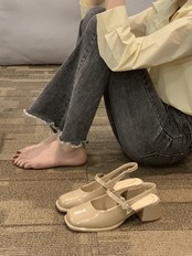 Baotou サンダル女性の 2023 夏の新ファッションオールマッチフレンチレトロ気質太いヒールスクエアトゥハイヒール 靴 シューズ サマー 夏物 スクウェア jxjxf60562246503