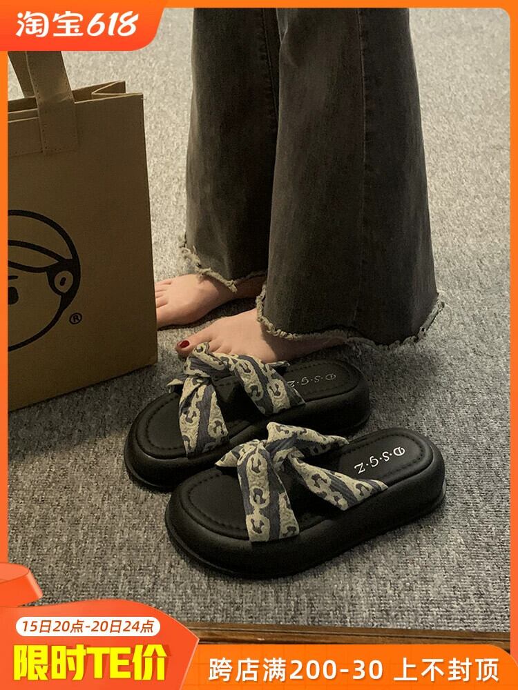 アウタースリッパ女性の夏の 2023 新しいファッションレトロ comtable 小さな厚底クロスワードサンダルとスリッパ ミュール 靴 シューズ サマー 夏物 jxjxf85364917776