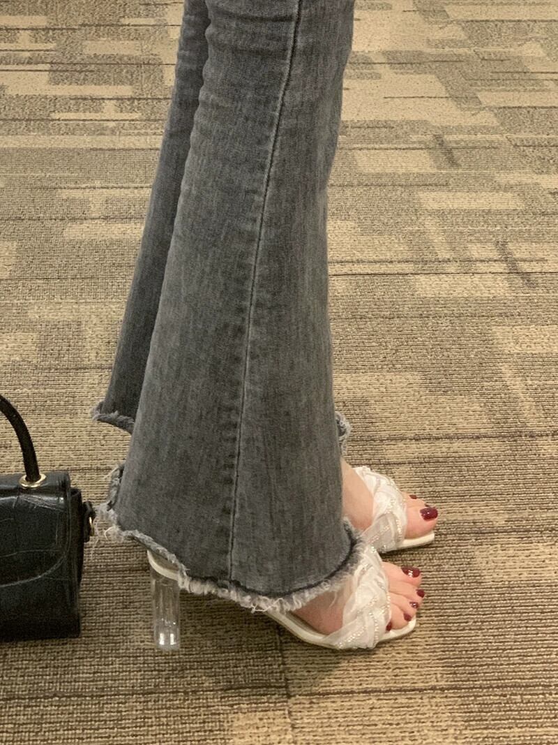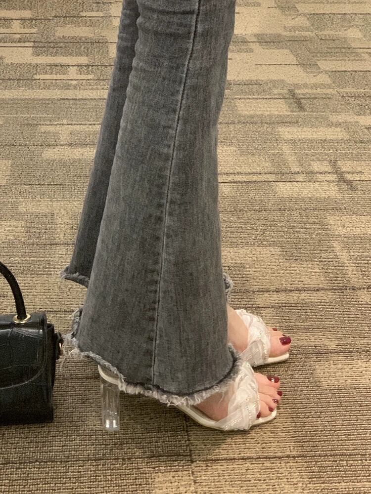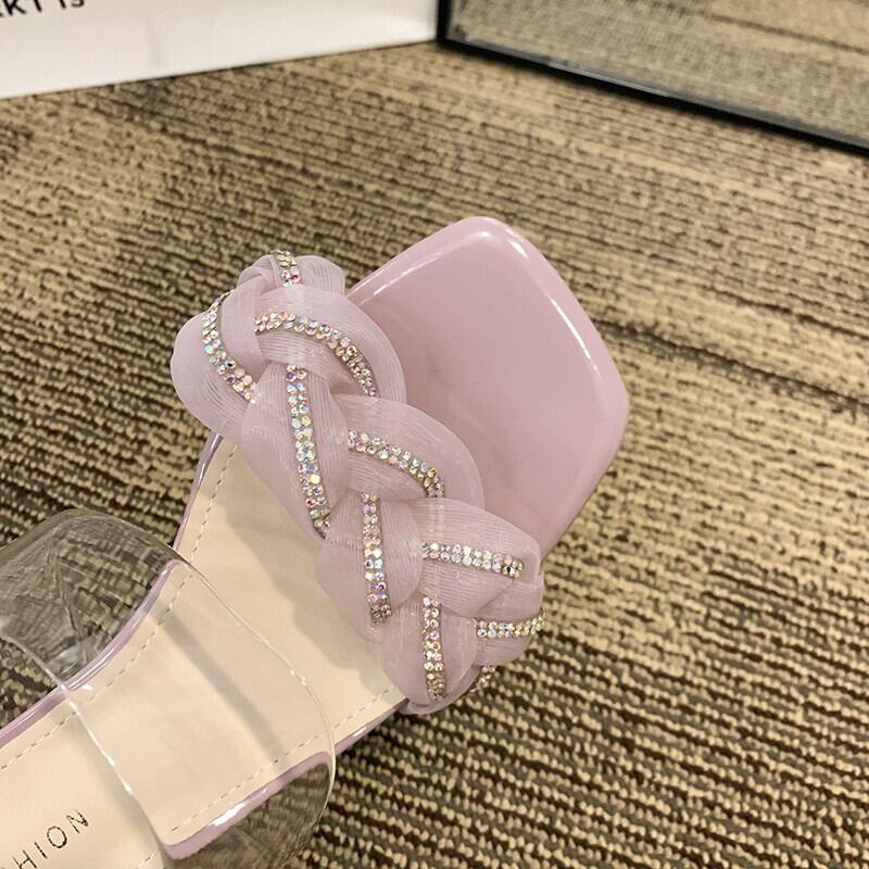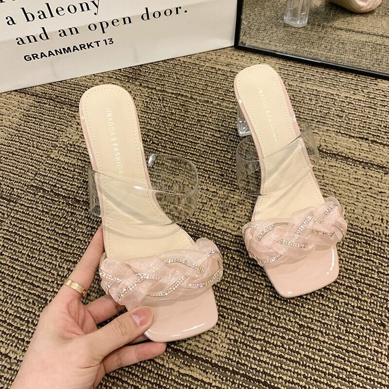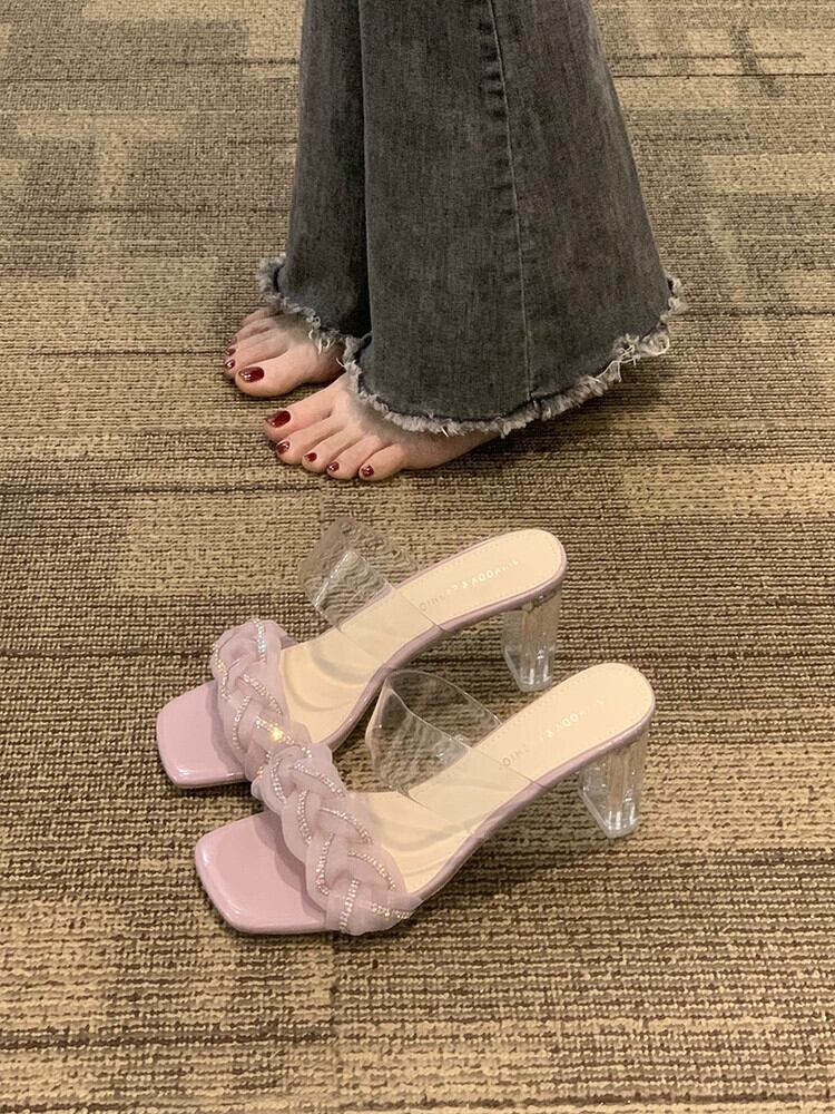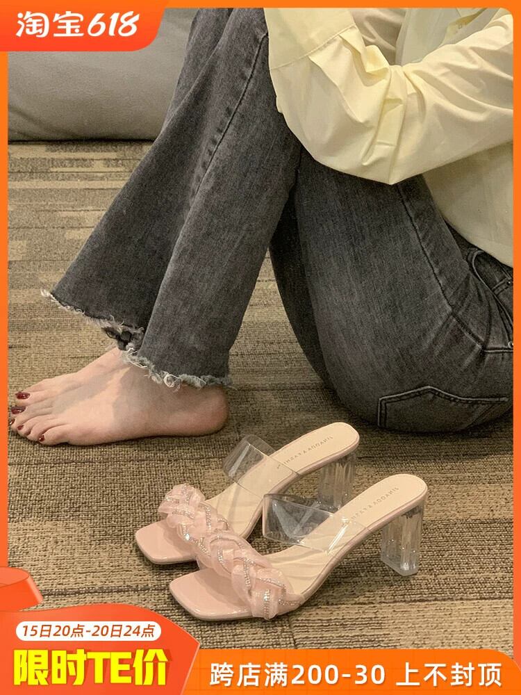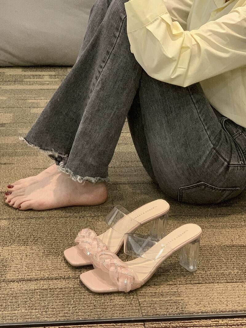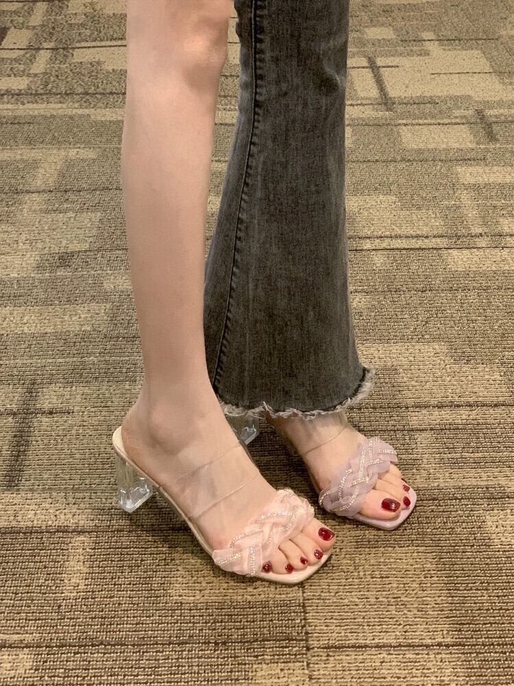 アウタースリッパレディース 2023 夏の新ファッションオールマッチ妖精ラインストーン気質透明一言ベルトハイヒールの靴 シューズ ミュール サマー 夏物 ハーネス jxjxf13581976549