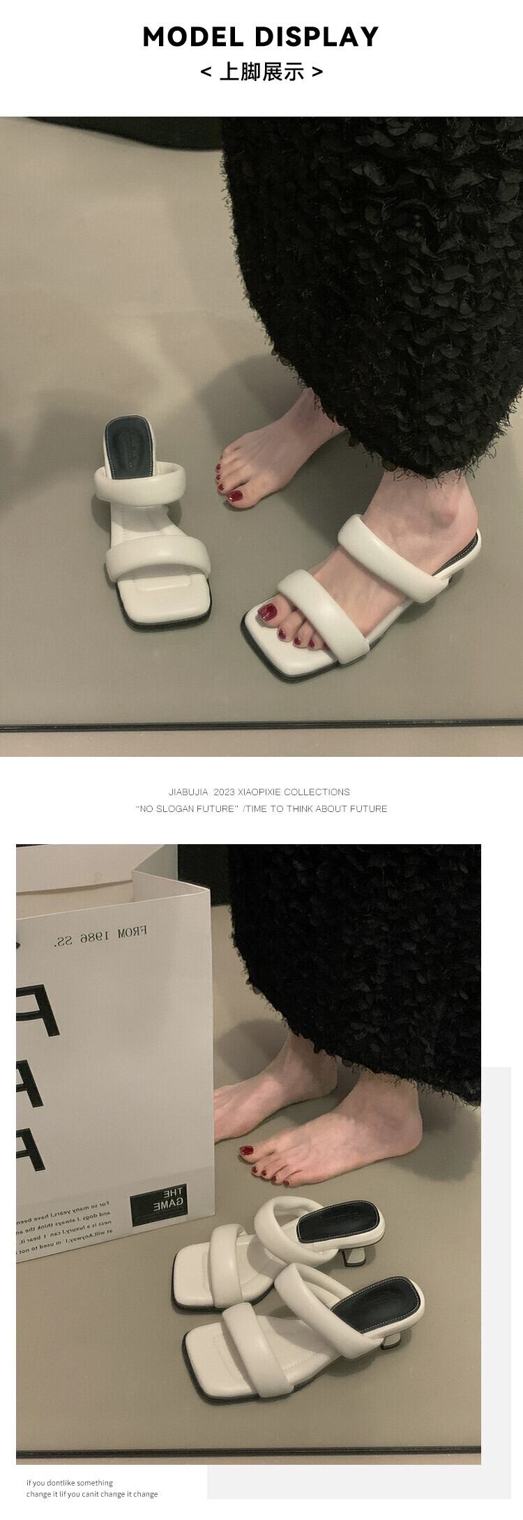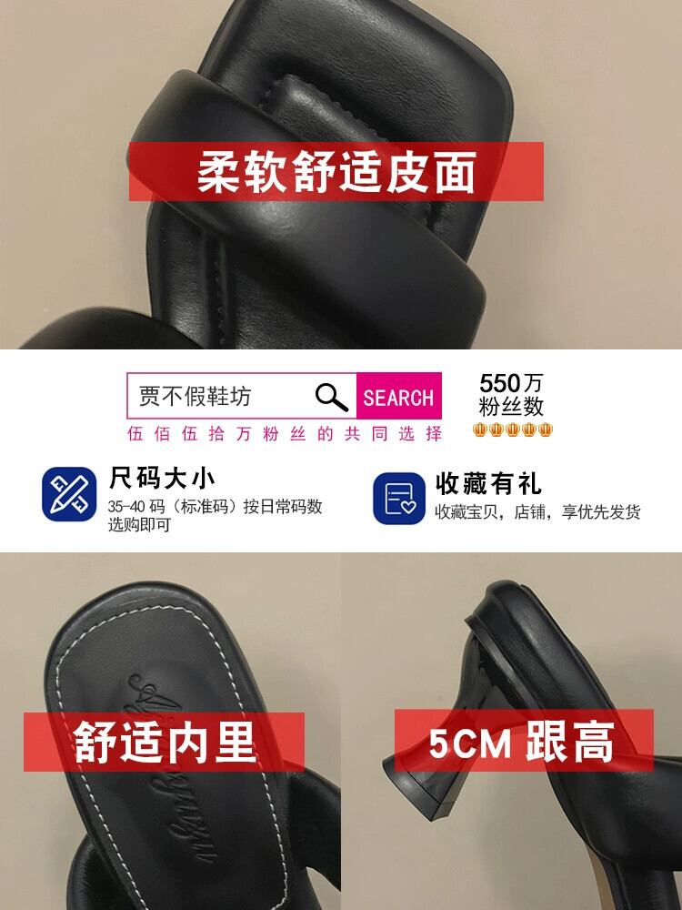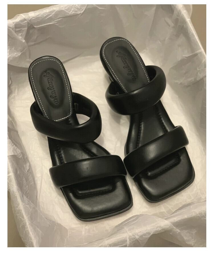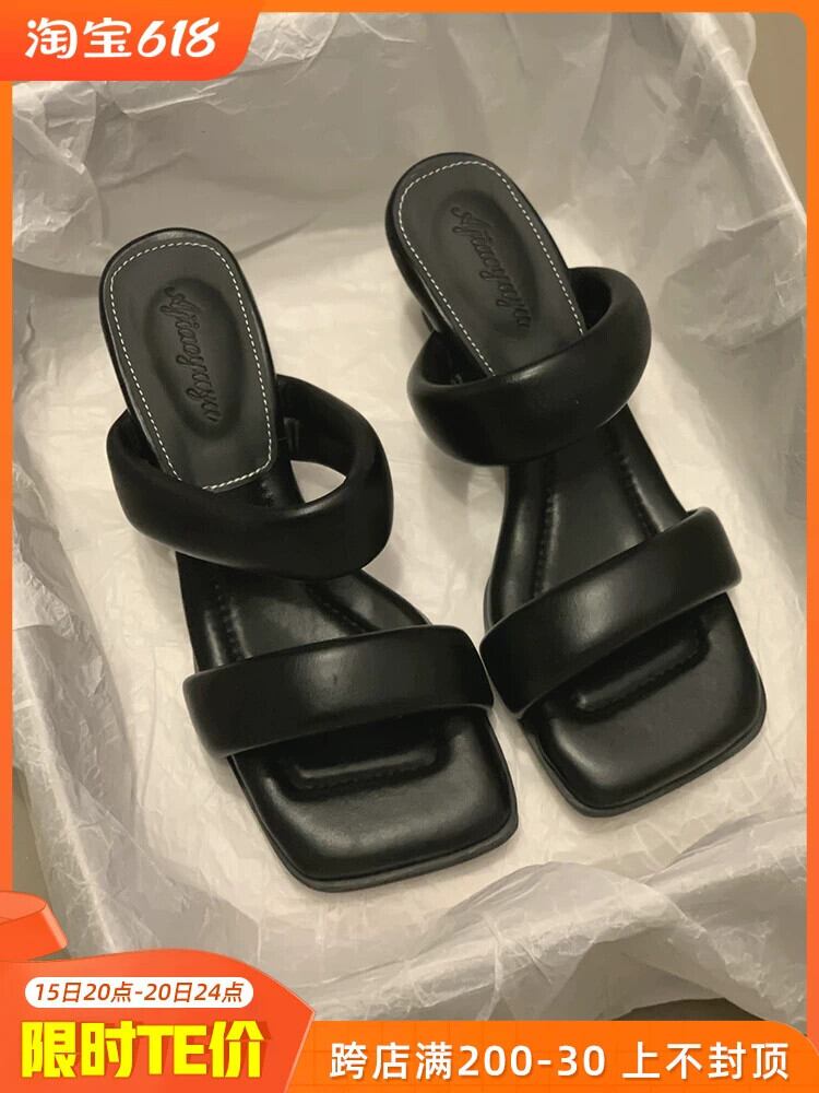スティレットサンダルとスリッパ女性外出 2023 夏の新ファッションオールマッチレトロ気質スクエアヘッドハイヒール 靴 シューズ ミュール サマー 夏物 スクウェア jxjxf17985800242
